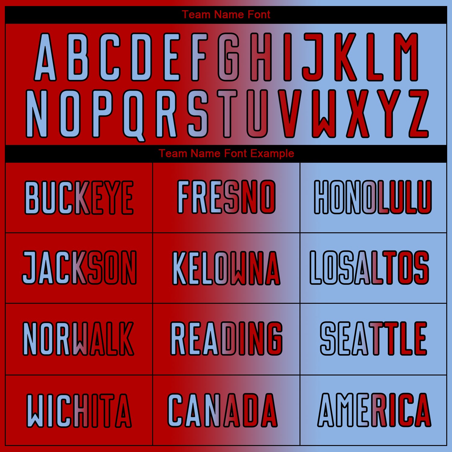 Custom Light Blue Red-Black Sublimation Gradient Fashion Soccer Uniform Jersey
