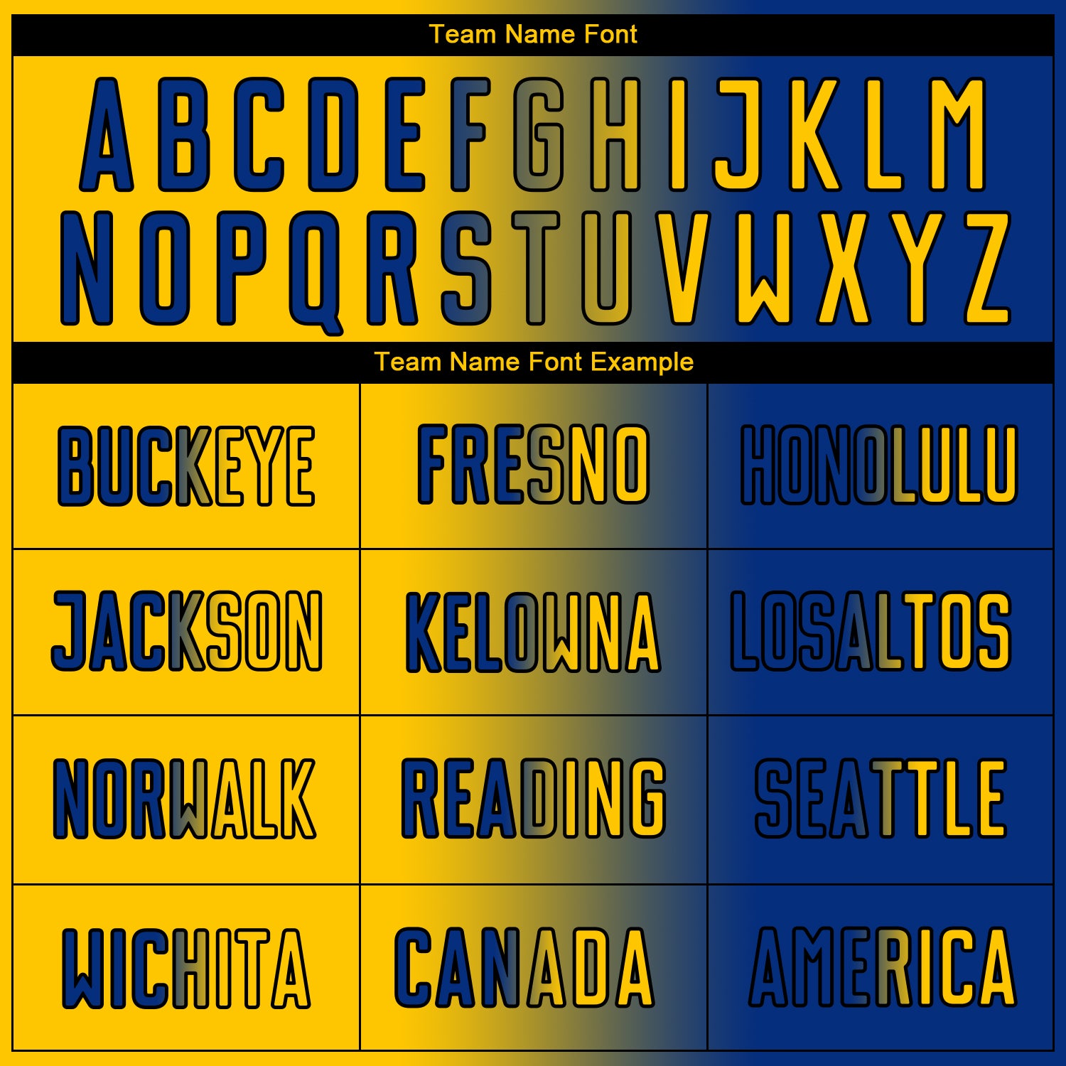 Custom Royal Yellow-Black Sublimation Gradient Fashion Soccer Uniform Jersey