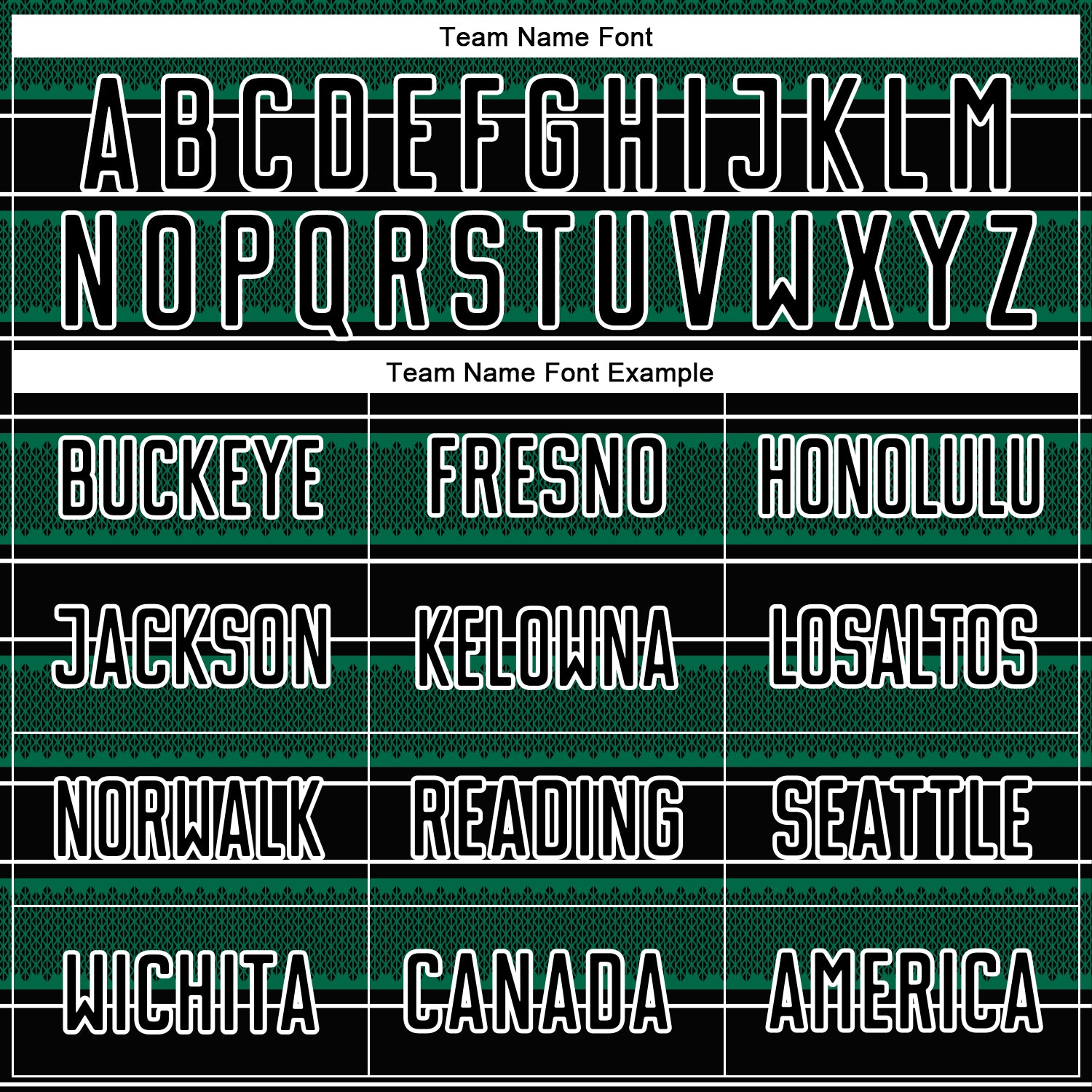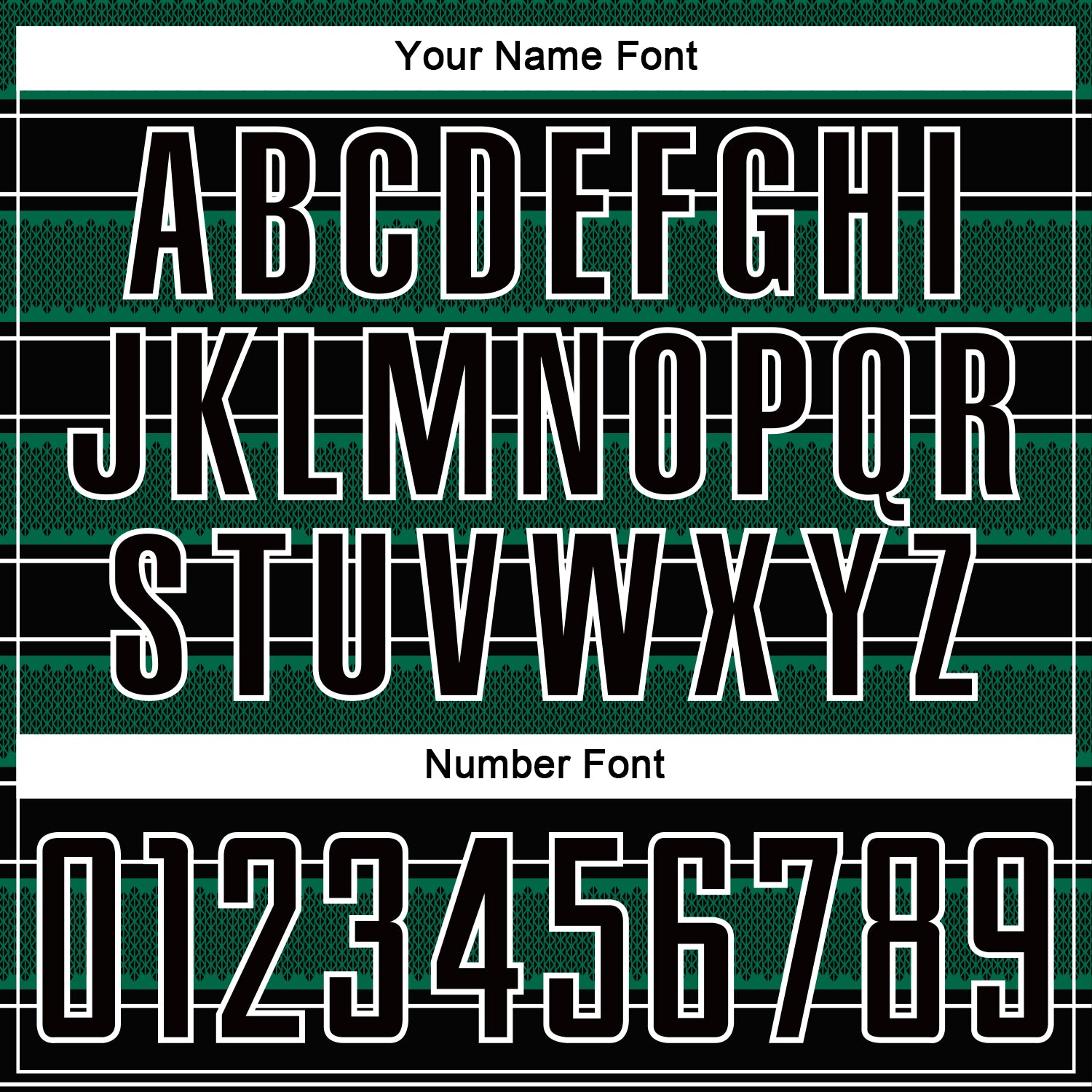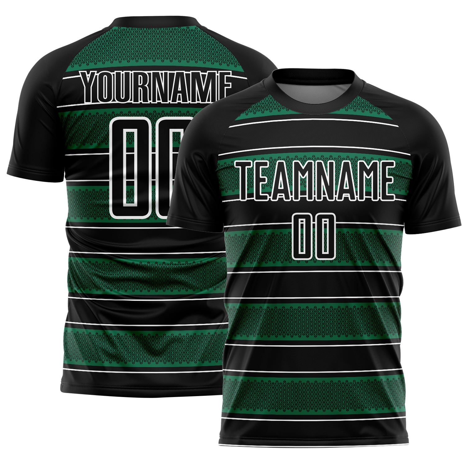 Custom Black Kelly Green-White Geometric Shapes And Line Sublimation Soccer Uniform Jersey