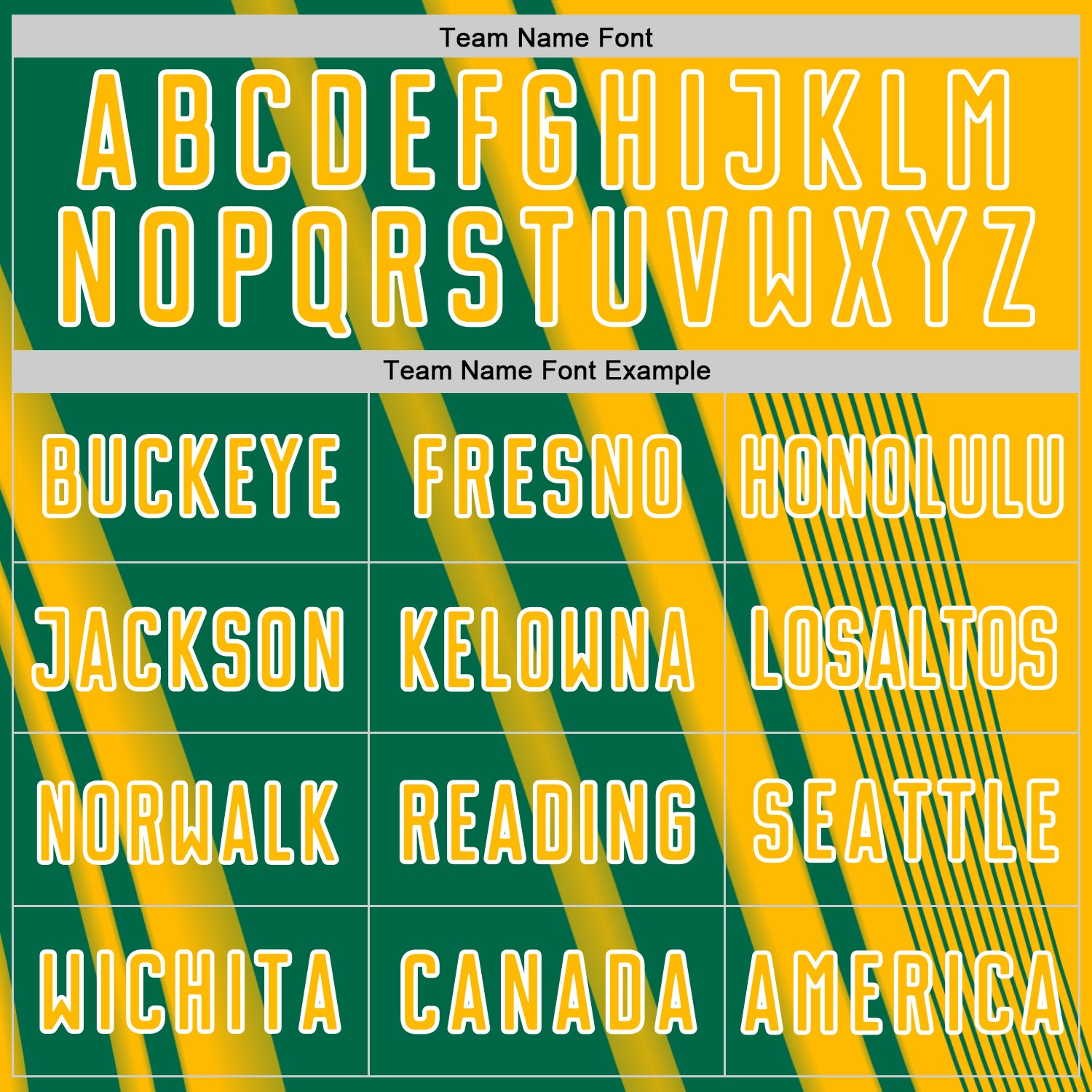 Custom Gold Kelly Green-White Lines Sports Sublimation Soccer Uniform Jersey