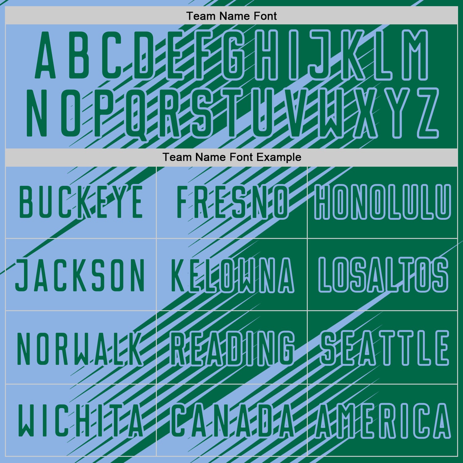 Custom Kelly Green Light Blue Line Sublimation Soccer Uniform Jersey