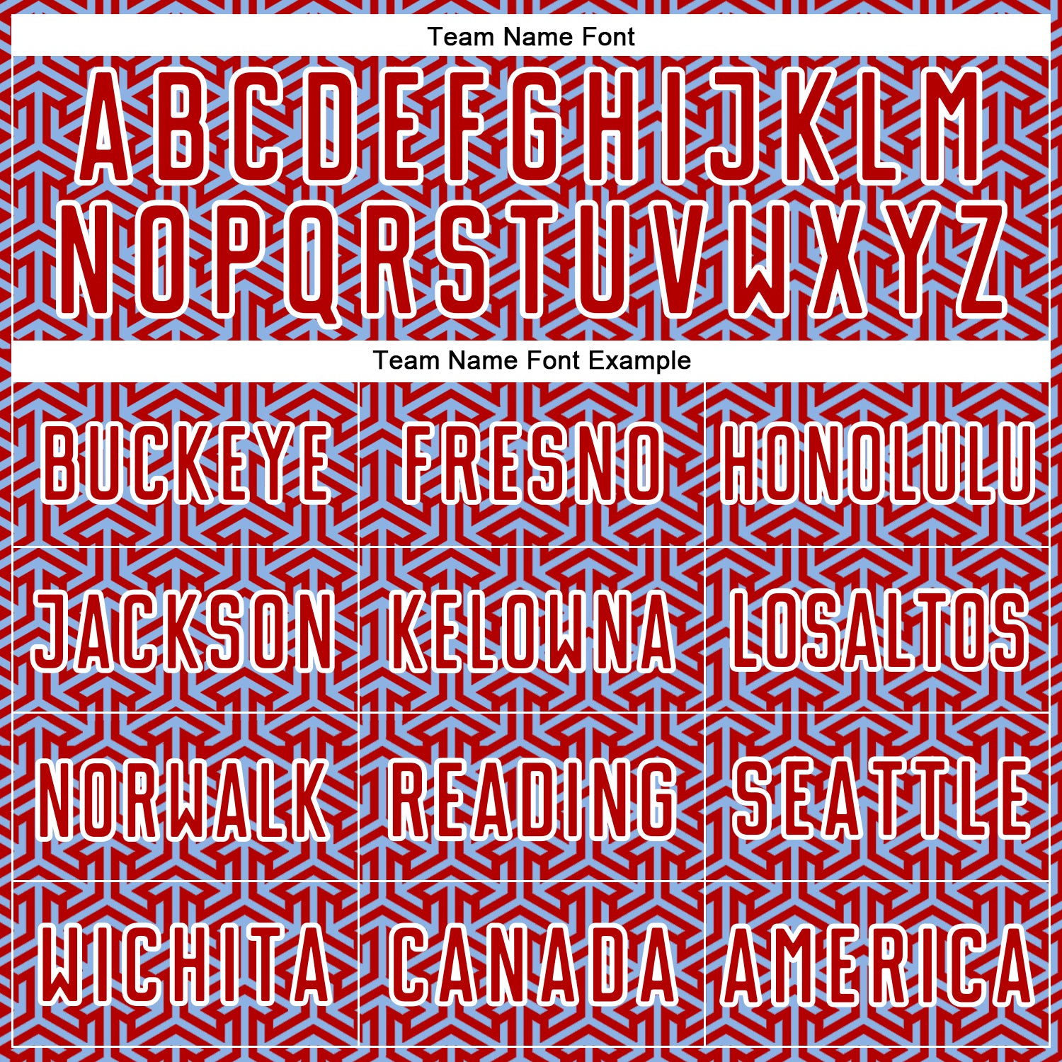 Custom Red Light Blue-White Geometric Arrow Sublimation Soccer Uniform Jersey