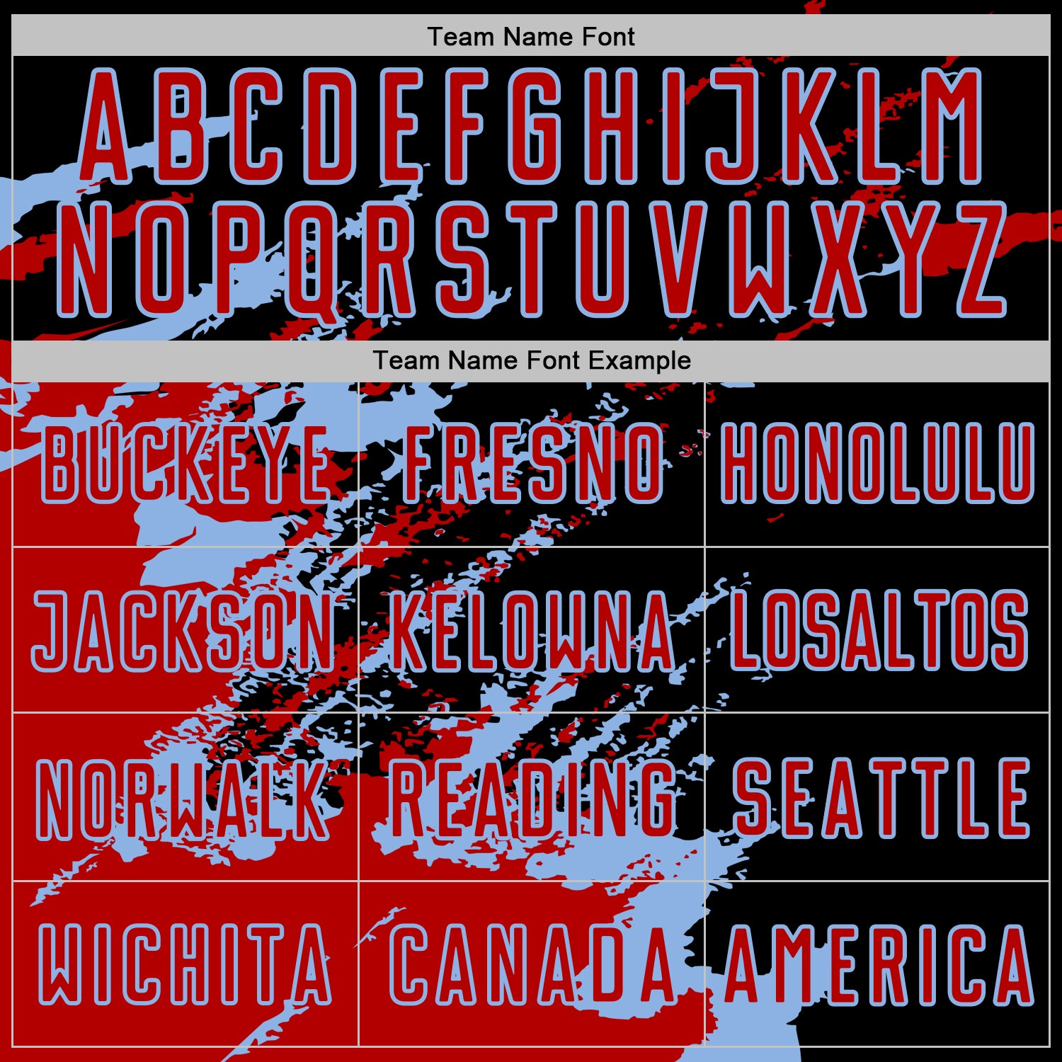 Custom Black Red-Light Blue Abstract Fragment Art Splash Sports Sublimation Soccer Uniform Jersey