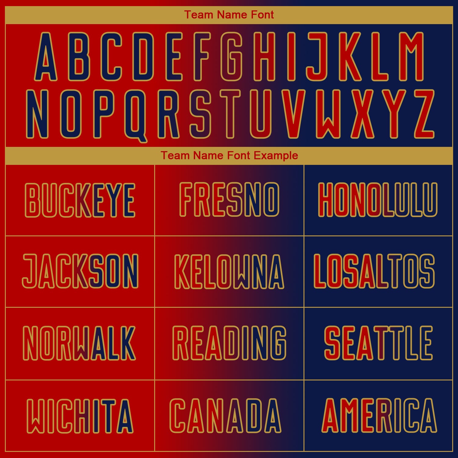Custom Navy Red-Old Gold Sublimation Gradient Fashion Soccer Uniform Jersey