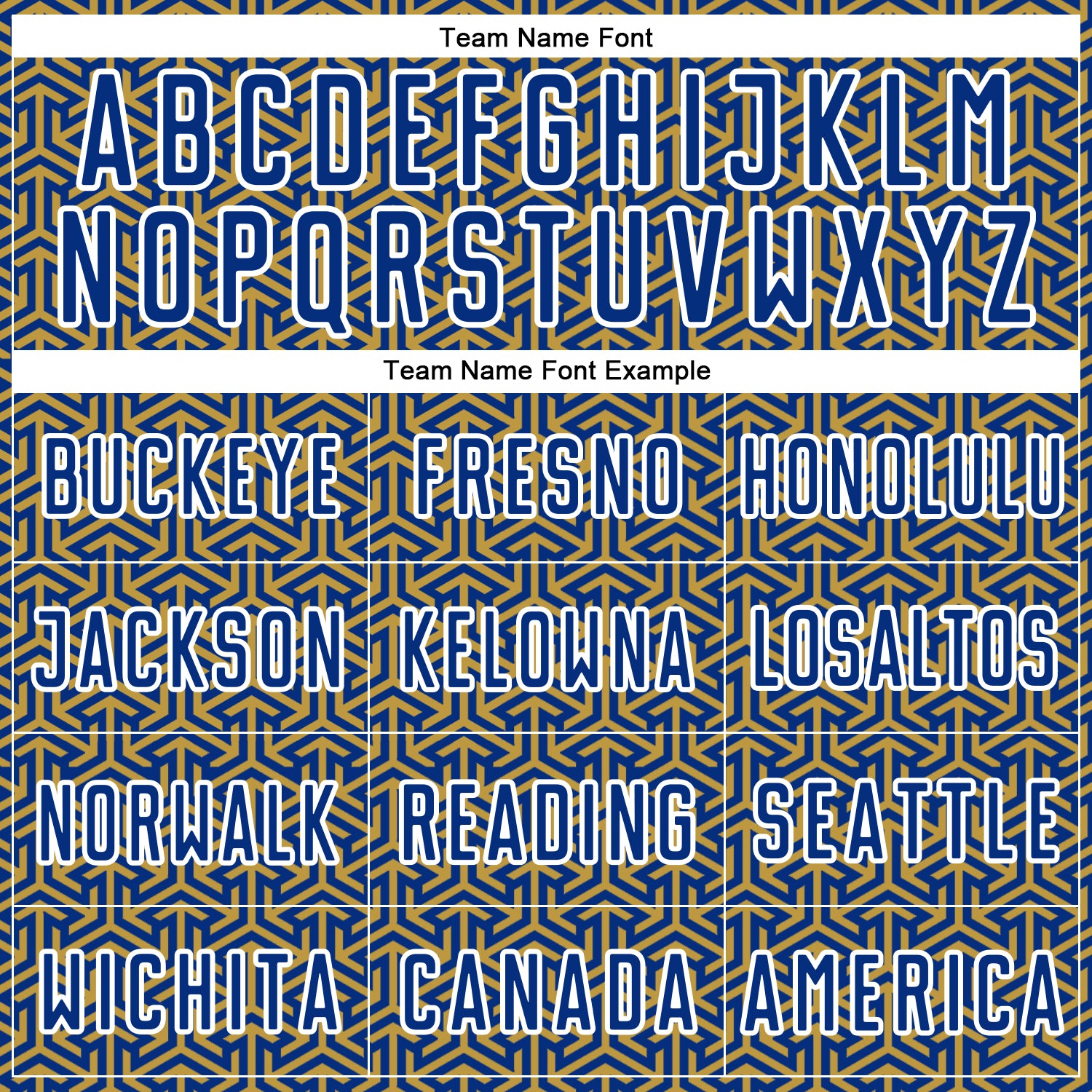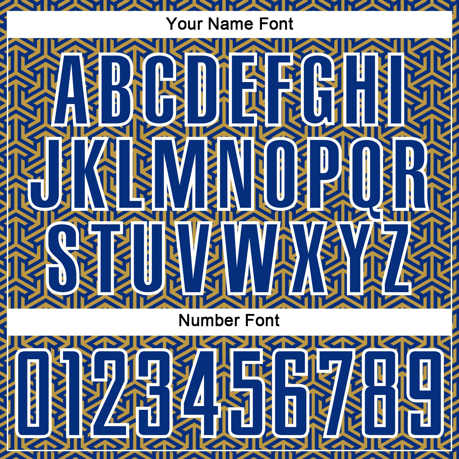 Custom Royal Old Gold-White Geometric Arrow Sublimation Soccer Uniform Jersey