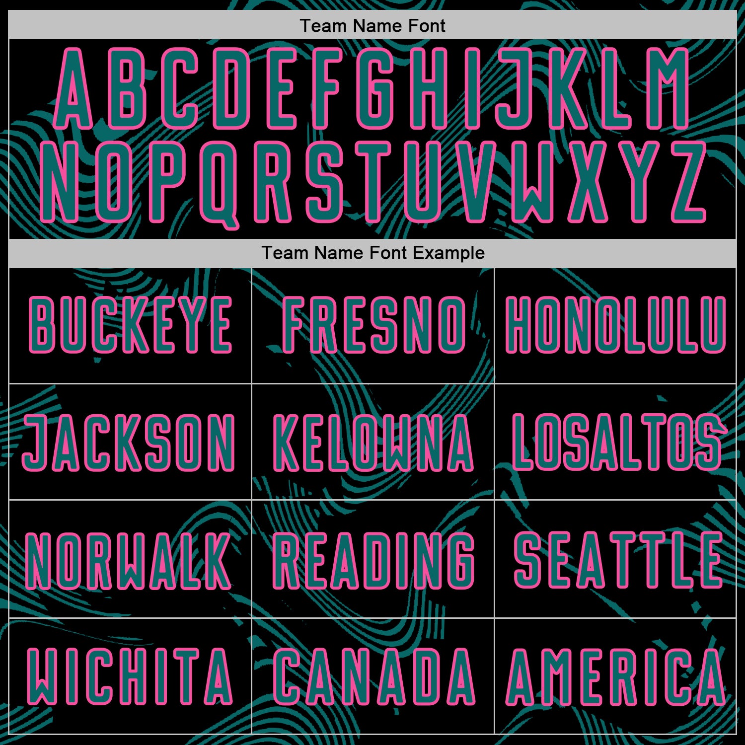 Custom Black Teal-Pink Curve Lines Sports Sublimation Soccer Uniform Jersey