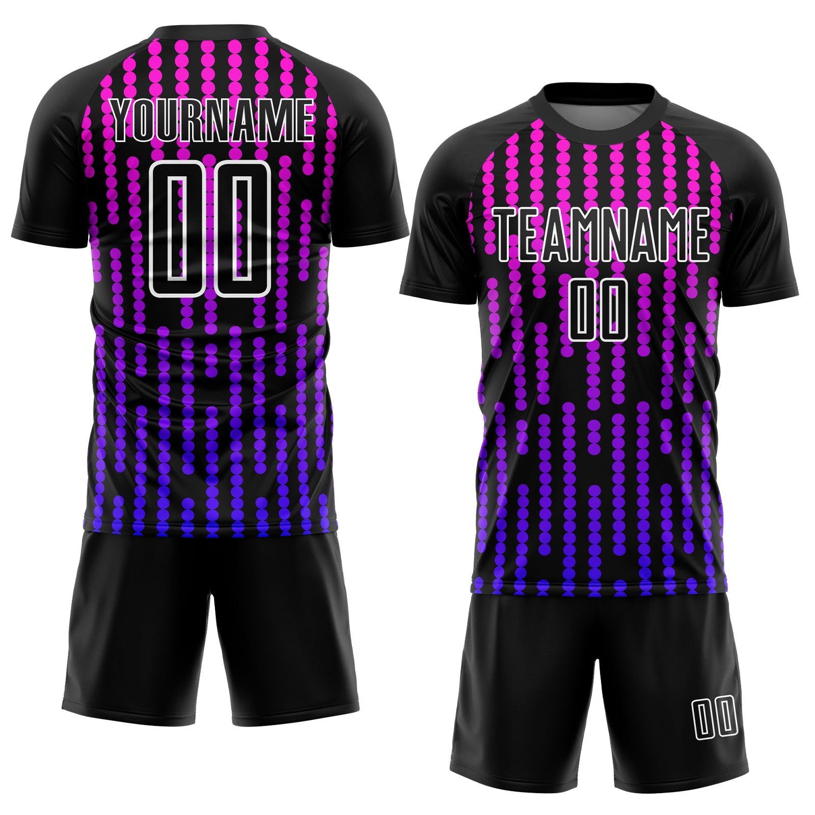 Custom Black Purple-Pink Lines Sublimation Soccer Uniform Jersey