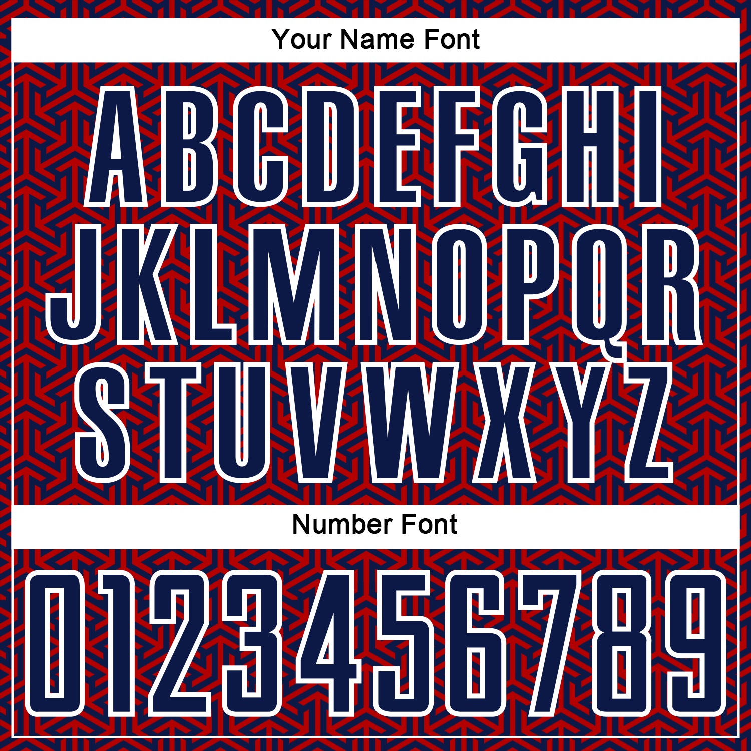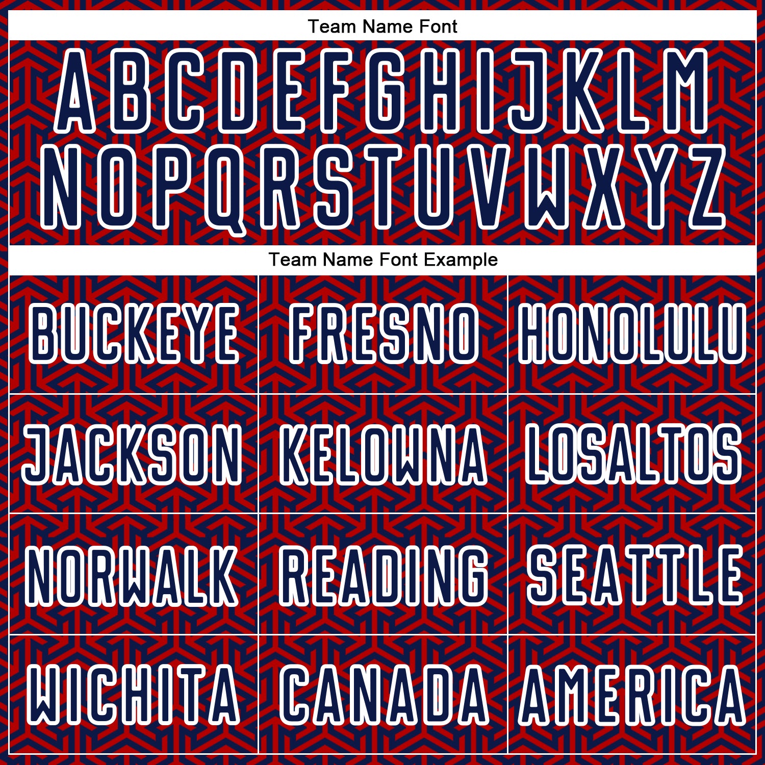 Custom Navy Red-White Geometric Arrow Sublimation Soccer Uniform Jersey
