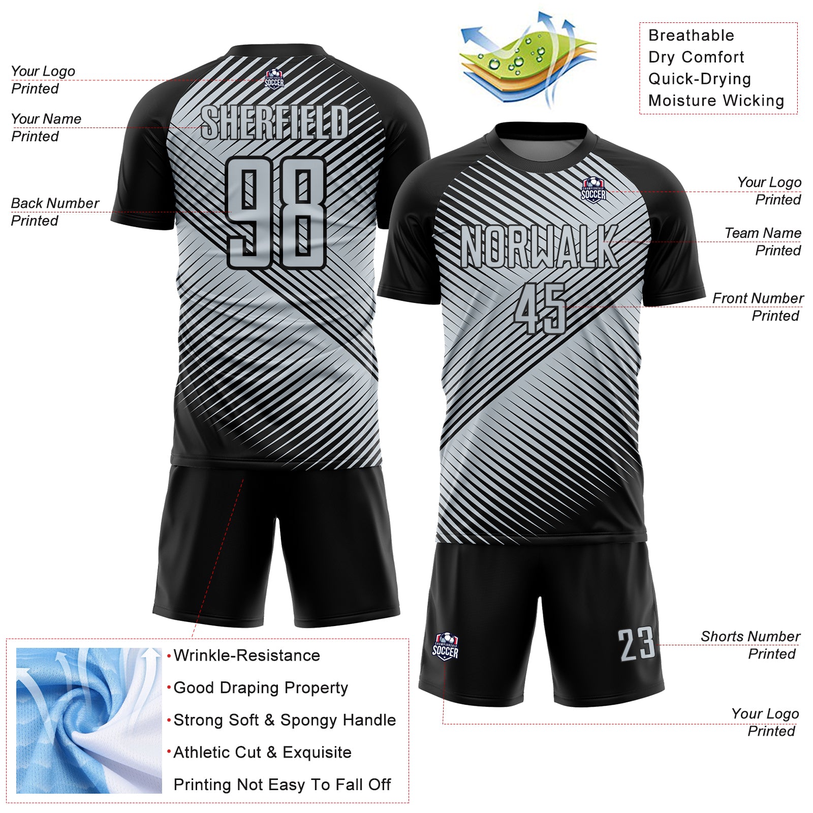 Custom Black Silver Line Sublimation Soccer Uniform Jersey