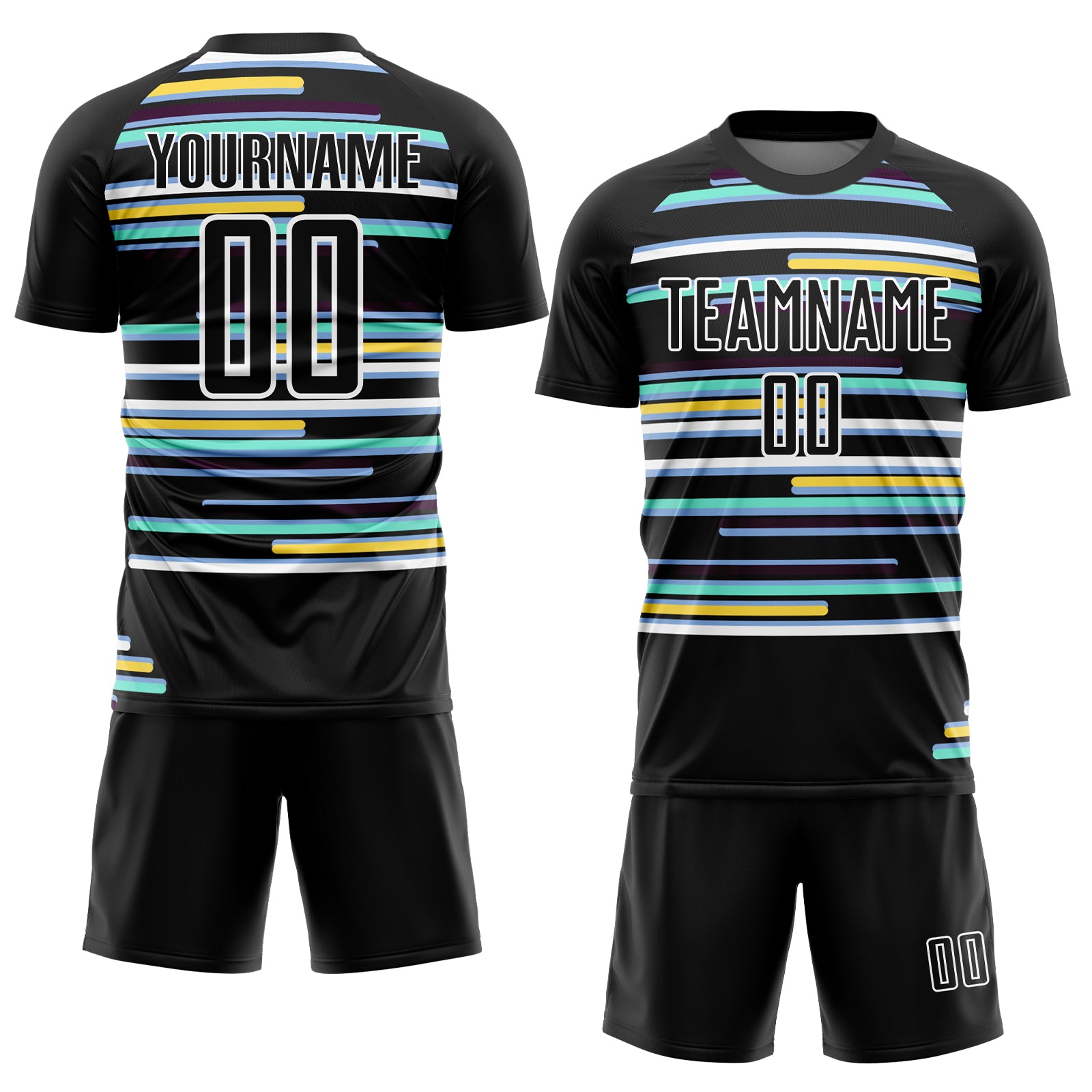 Custom Black White Lines Sublimation Soccer Uniform Jersey