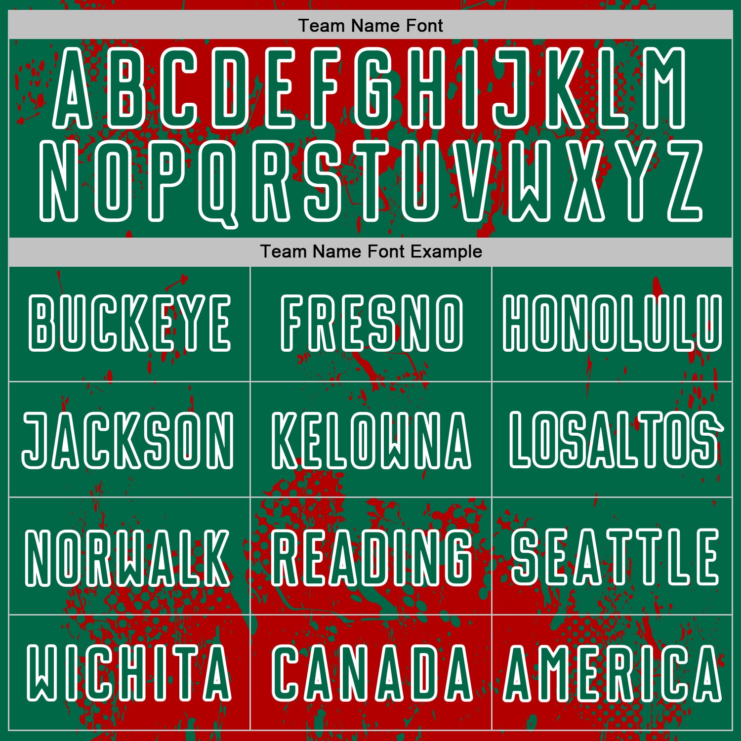 Custom Red Kelly Green-White Abstract Splatter Grunge Art Sports Sublimation Soccer Uniform Jersey