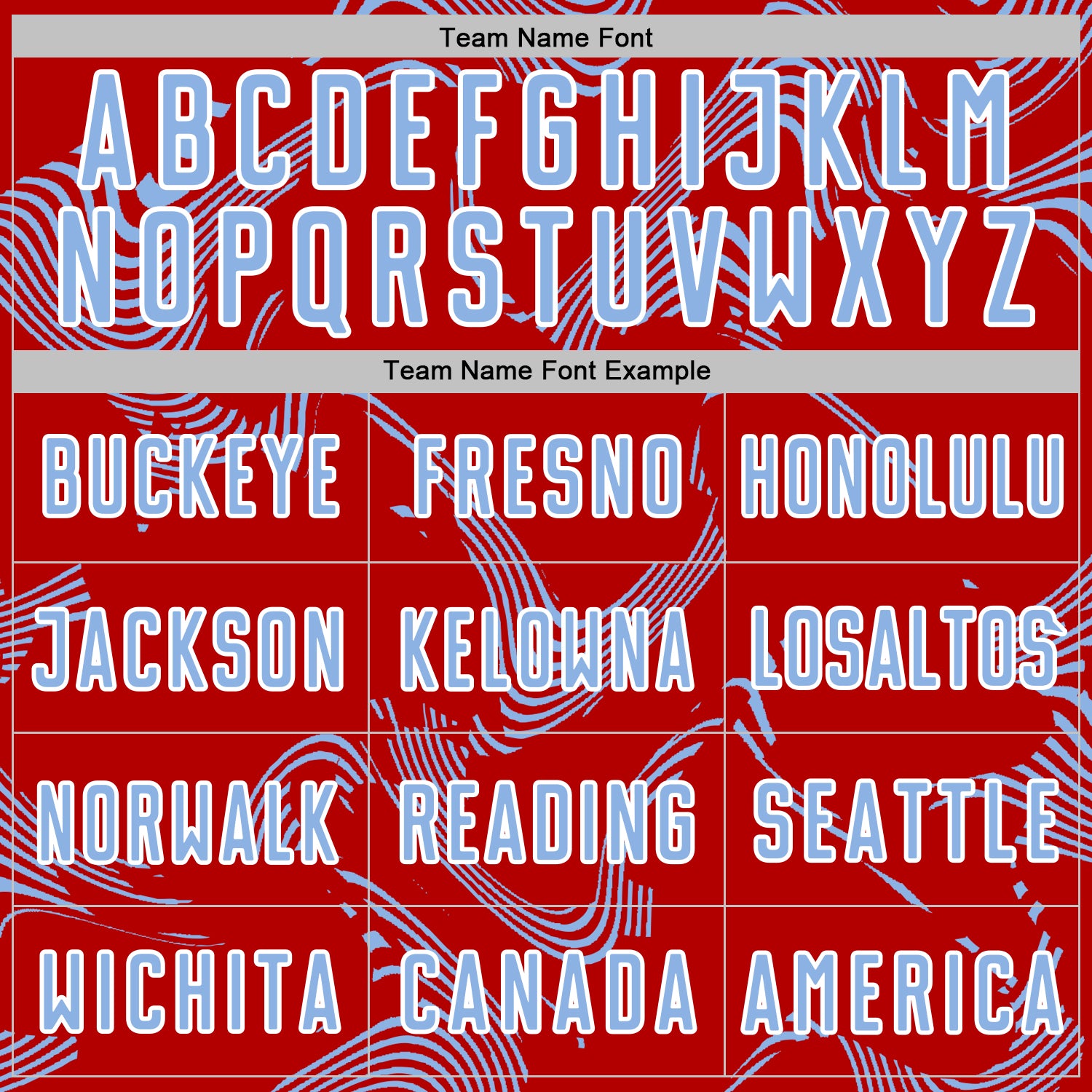 Custom Red Light Blue-White Curve Lines Sports Sublimation Soccer Uniform Jersey