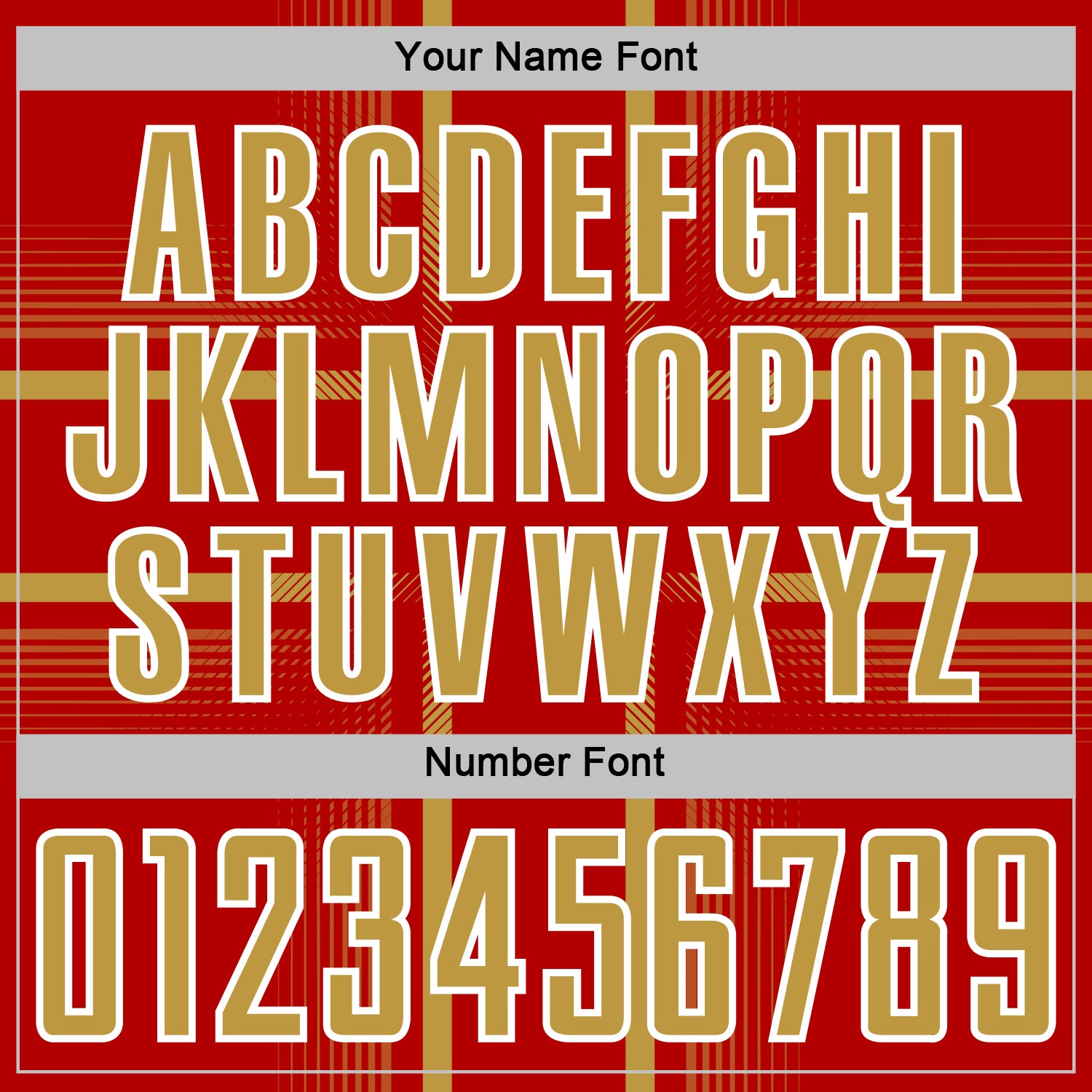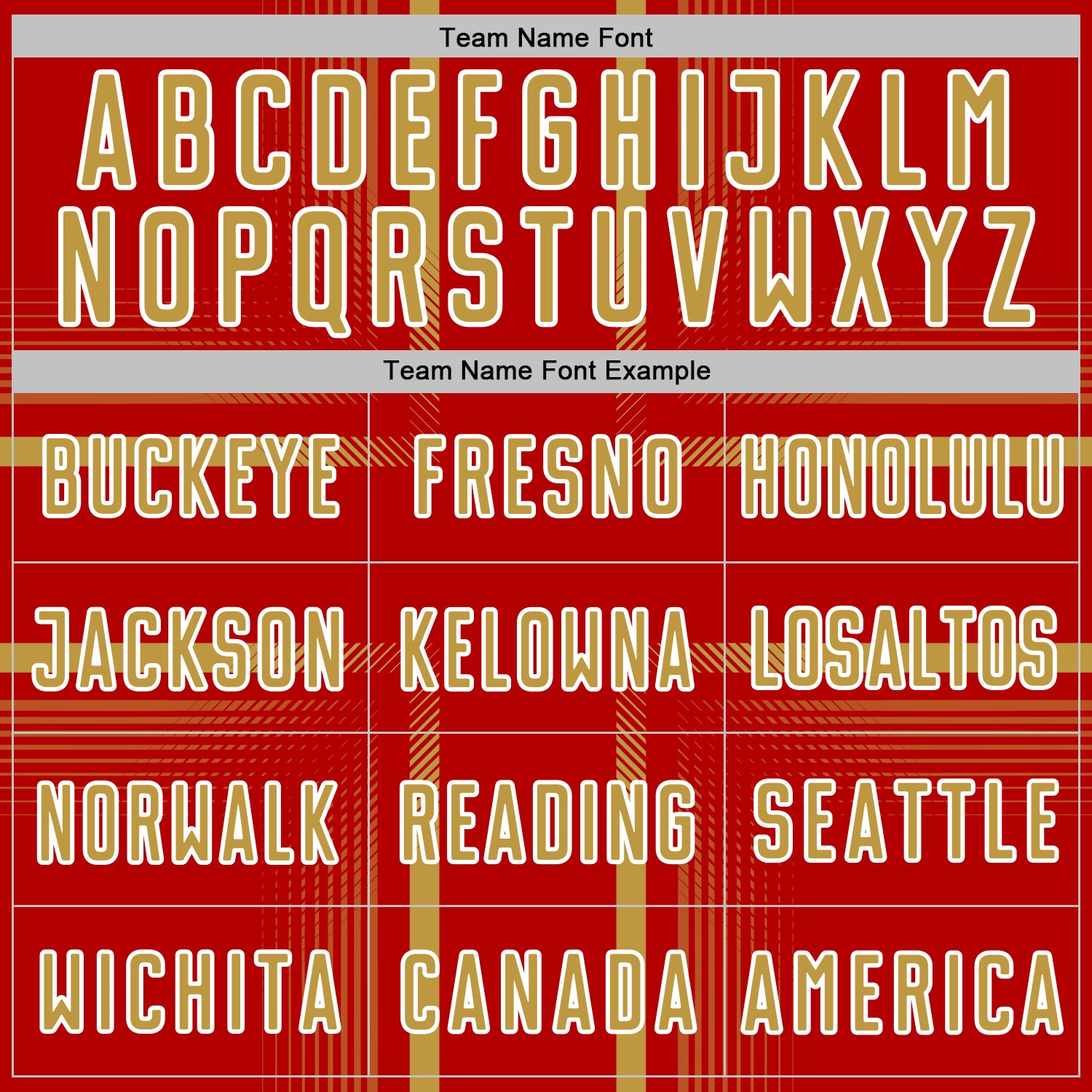 Custom Red Old Gold-White Lines Sublimation Soccer Uniform Jersey