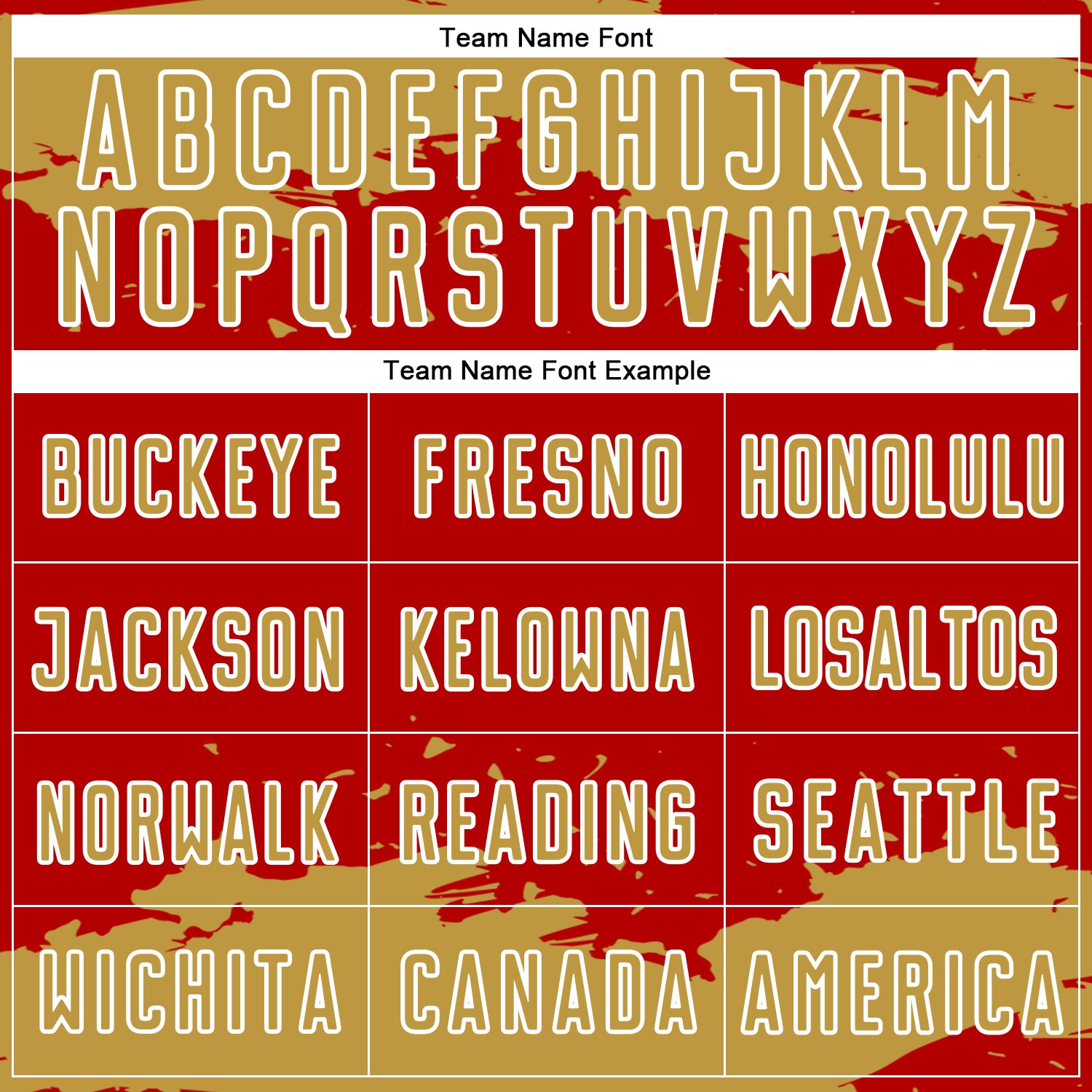 Custom Red Old Gold-White Abstract Fragment Art Sublimation Soccer Uniform Jersey