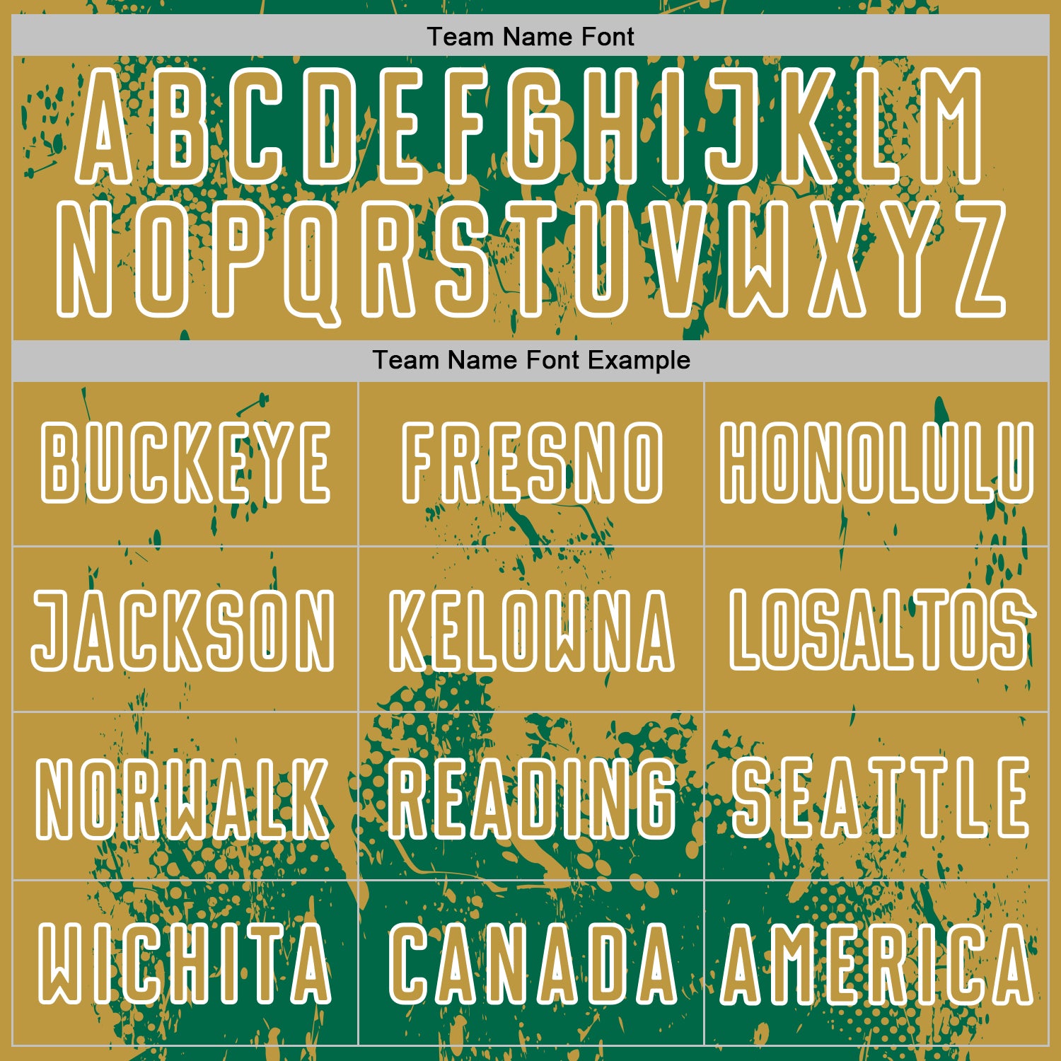 Custom Kelly Green Old Gold-White Abstract Splatter Grunge Art Sports Sublimation Soccer Uniform Jersey
