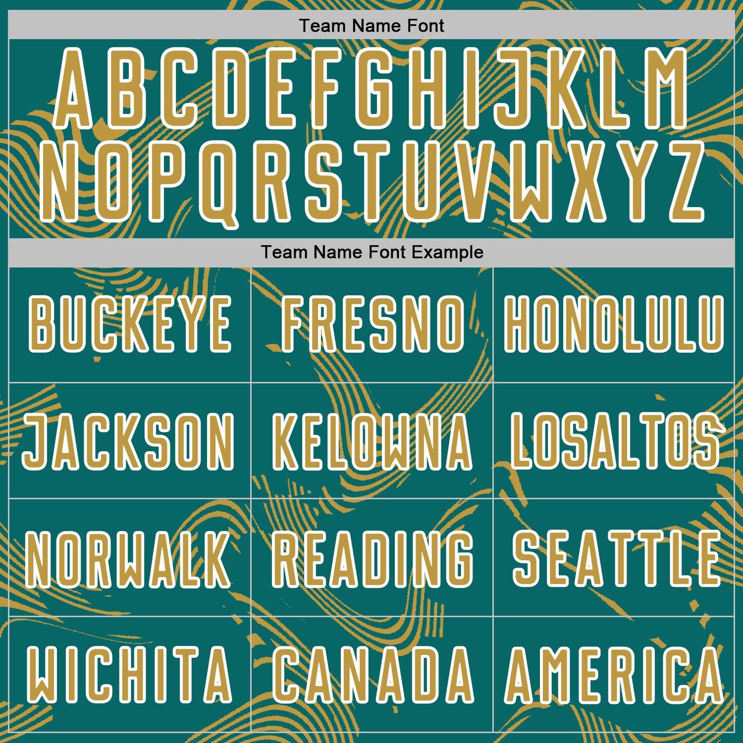 Custom Teal Old Gold-White Curve Lines Sports Sublimation Soccer Uniform Jersey