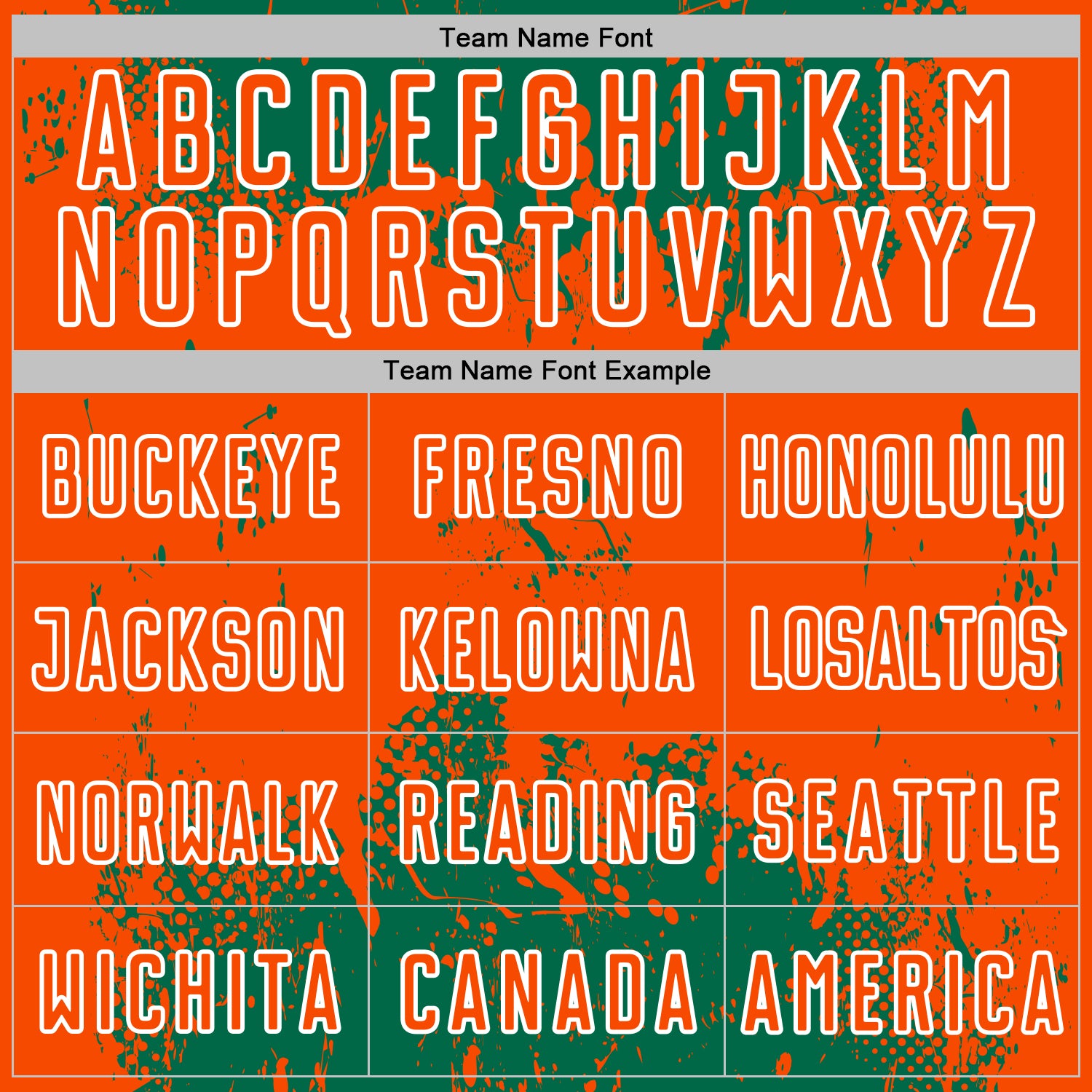 Custom Kelly Green Orange-White Abstract Splatter Grunge Art Sports Sublimation Soccer Uniform Jersey