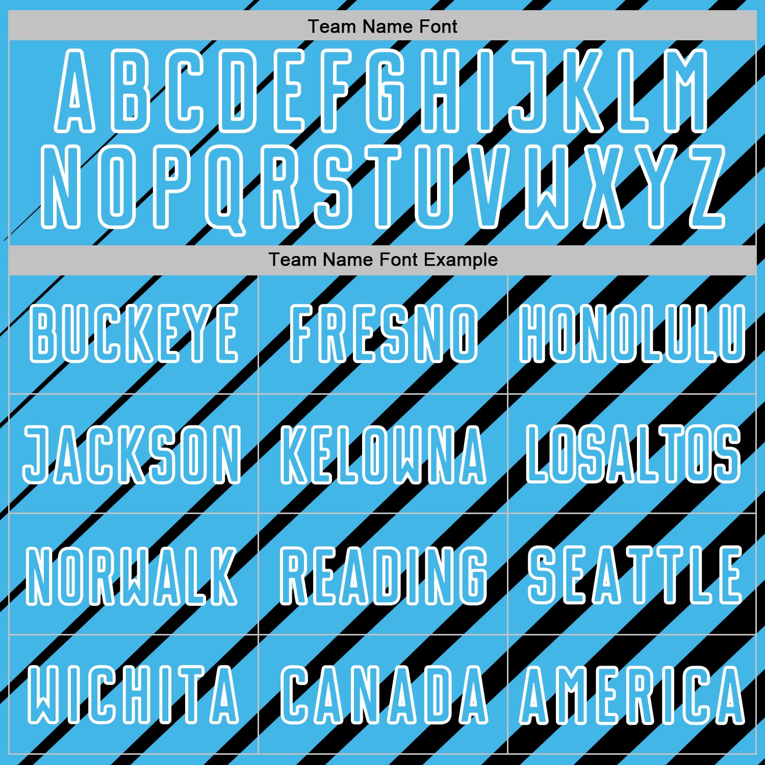 Custom Black Sky Blue-White Lines Sublimation Soccer Uniform Jersey