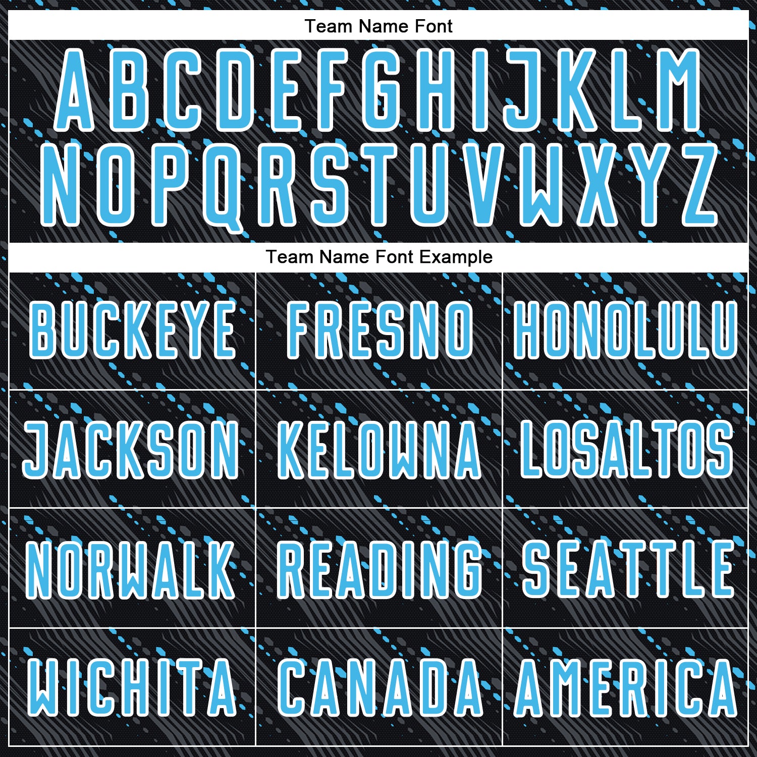 Custom Black Sky Blue-White Slant Lines Sports Sublimation Soccer Uniform Jersey