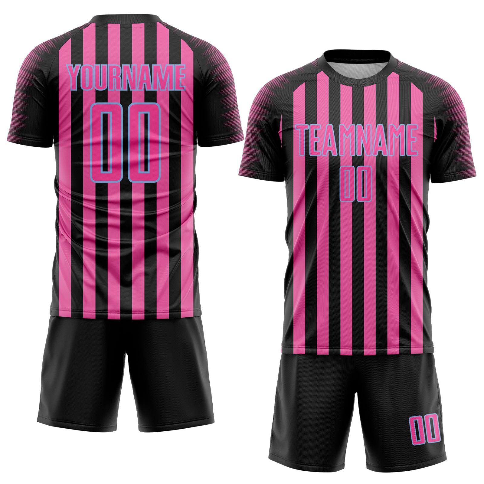 Custom Black Pink-Light Blue Stripe Sports Sublimation Soccer Uniform Jersey