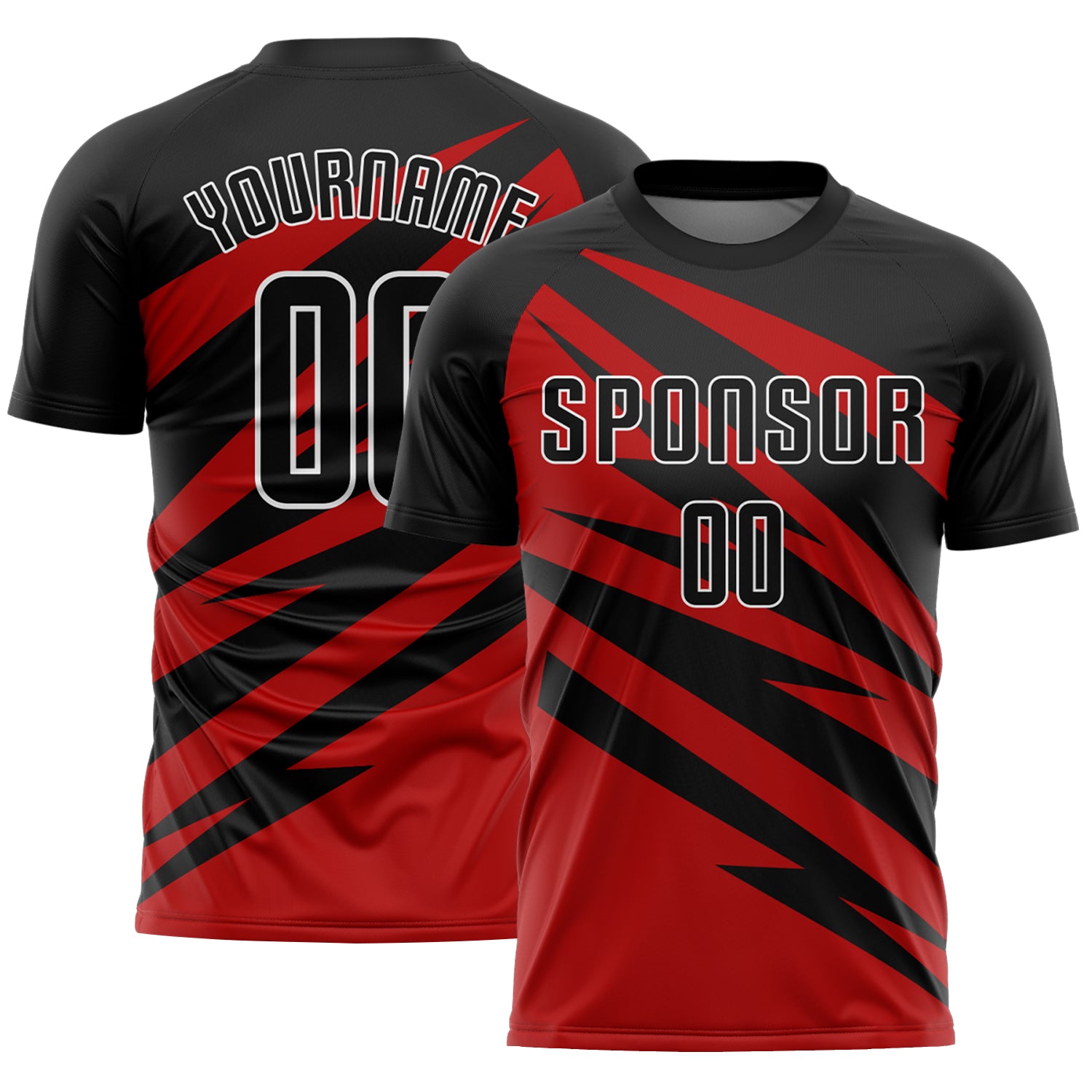 Custom Black Red-White Abstract Line Sports Sublimation Soccer Uniform Jersey