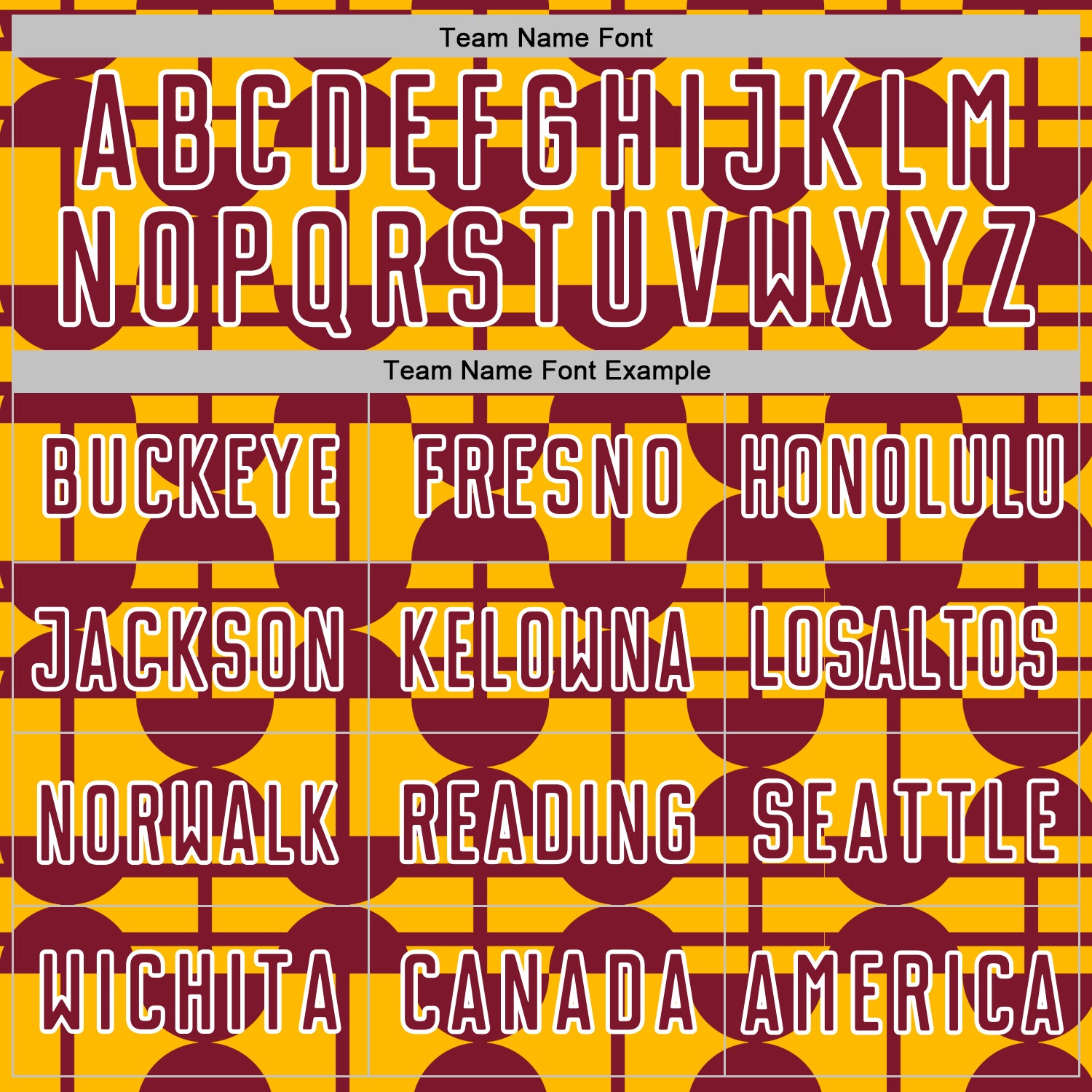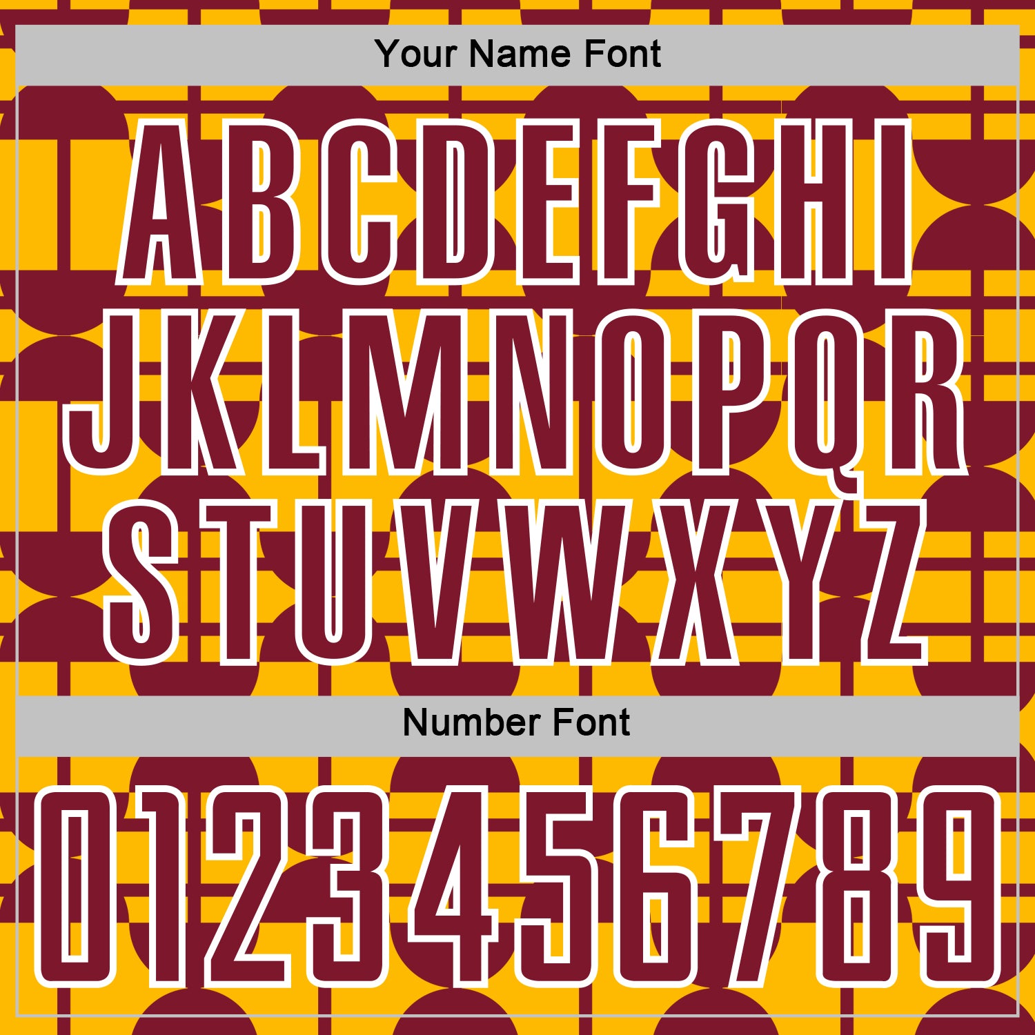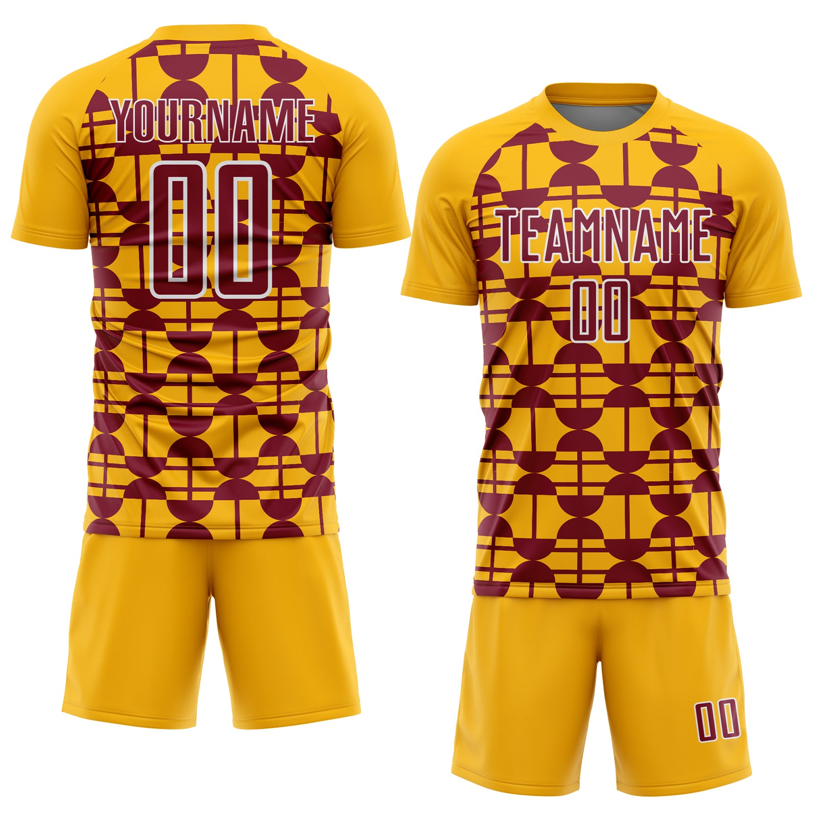 Custom Gold Crimson-White Geometric Shapes Sports Sublimation Soccer Uniform Jersey