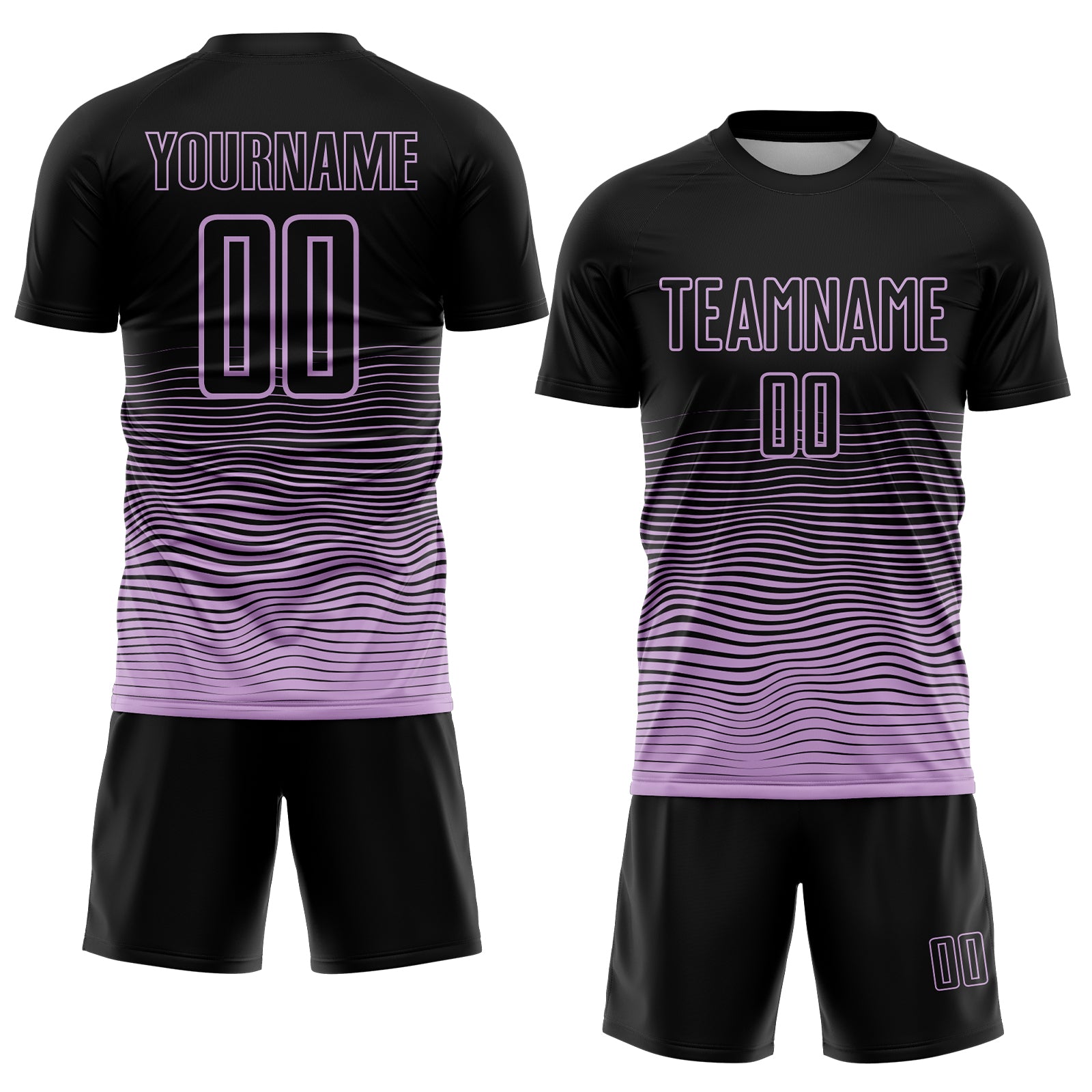 Custom Black Light Purple Gradient Wave Line Sports Sublimation Soccer Uniform Jersey