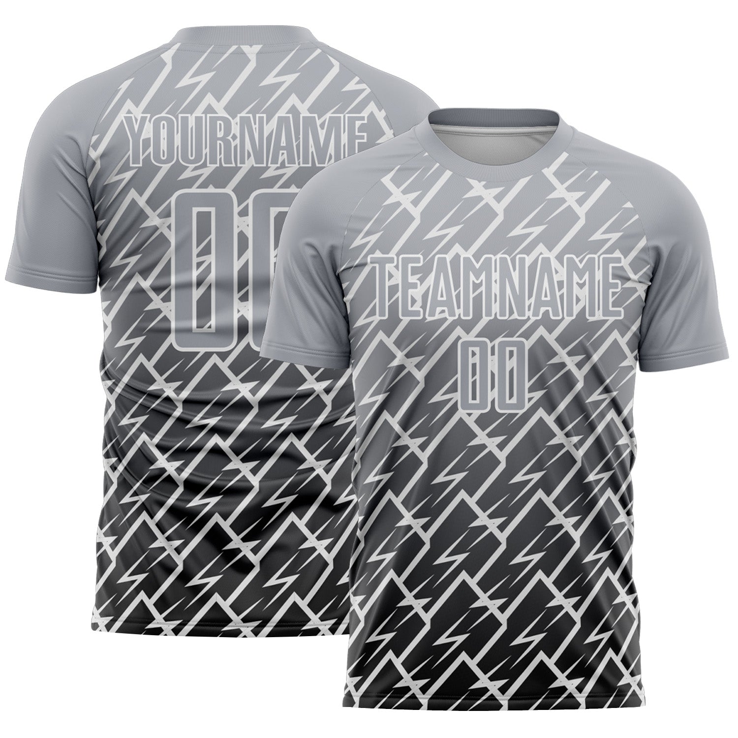 Custom Gray Black-White Lightning Sports Sublimation Soccer Uniform Jersey