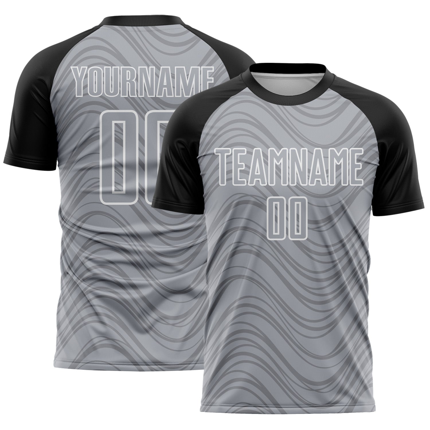Custom Gray Black-White Wavy Lines Sports Sublimation Soccer Uniform Jersey