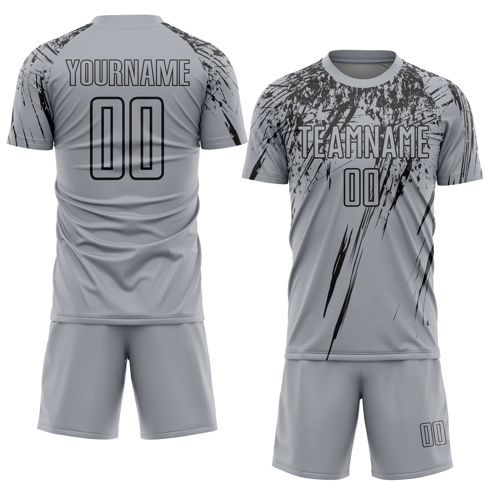 Custom Gray Black Splash Sports Sublimation Soccer Uniform Jersey
