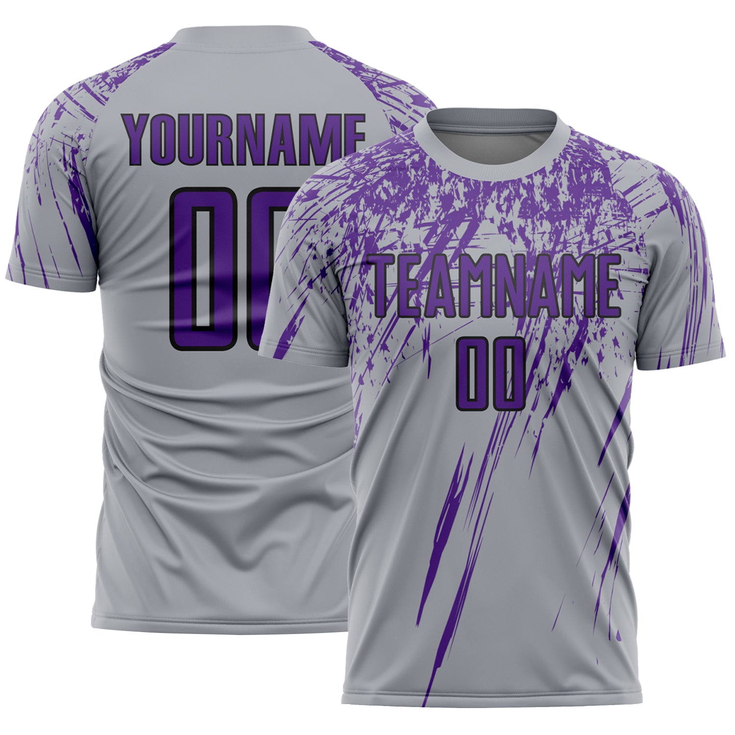 Custom Gray Purple-Black Splash Sports Sublimation Soccer Uniform Jersey
