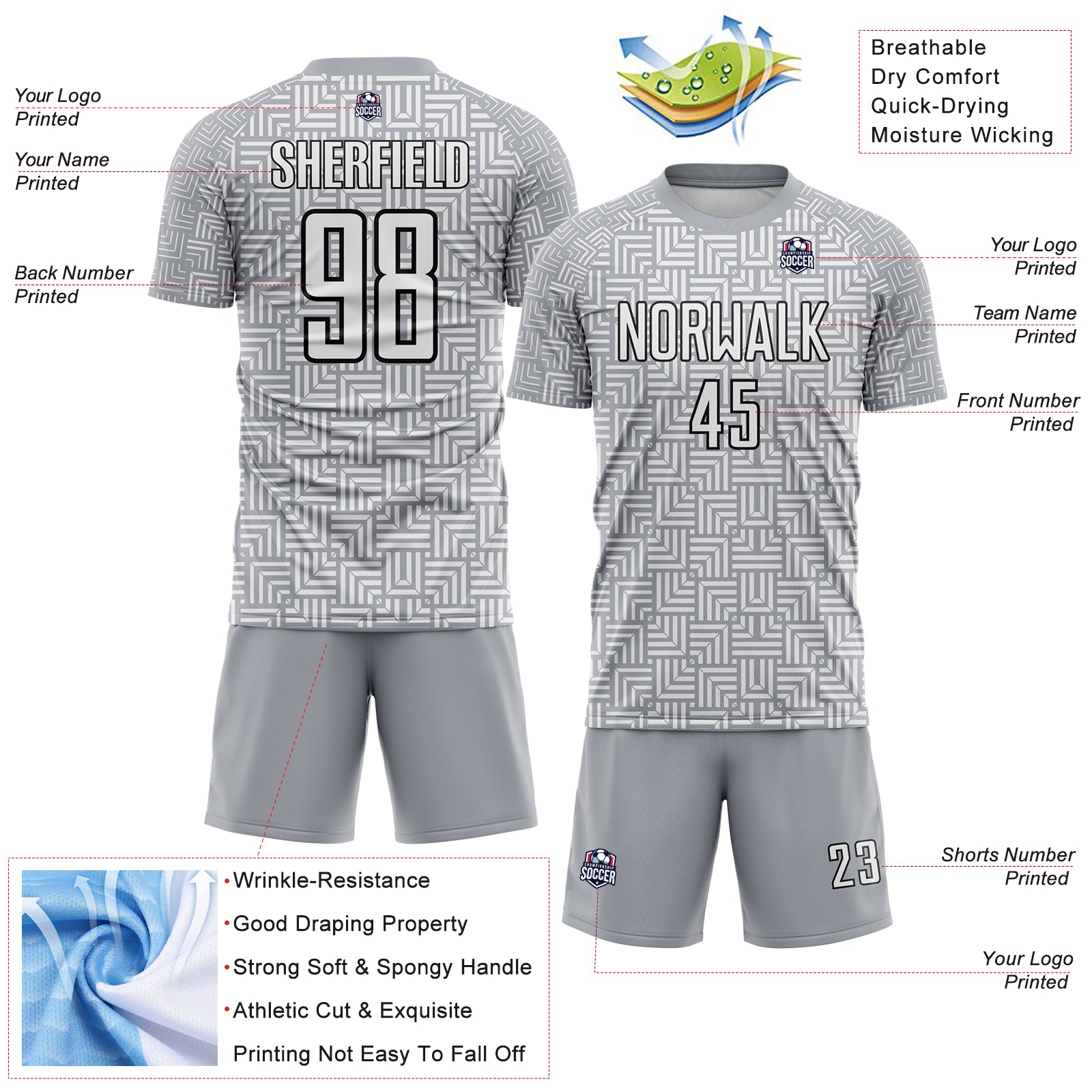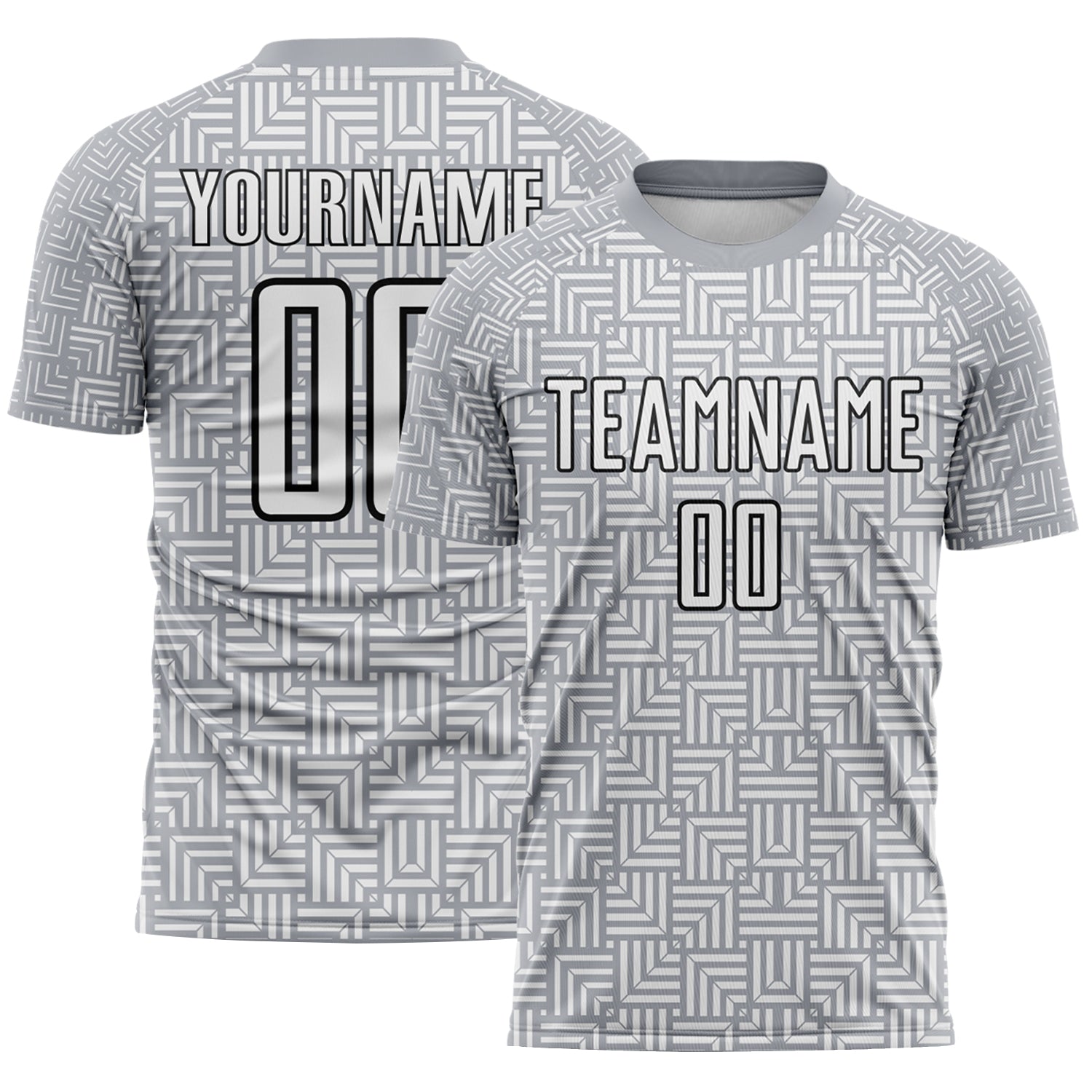Custom Gray White-Black Geometric Maze Interlocking Square Sports Sublimation Soccer Uniform Jersey