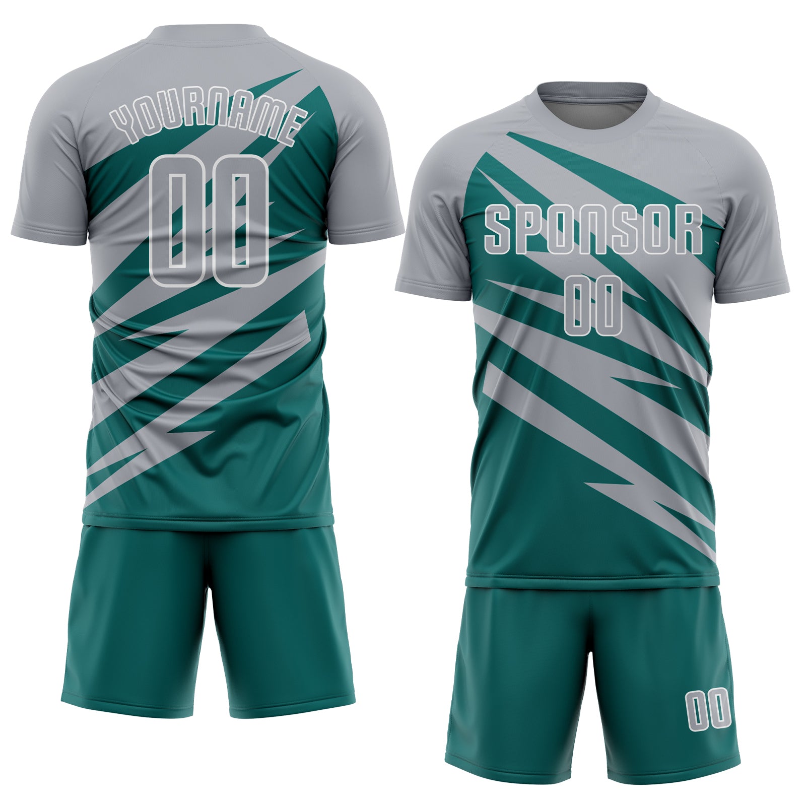 Custom Gray Teal-White Abstract Line Sports Sublimation Soccer Uniform Jersey