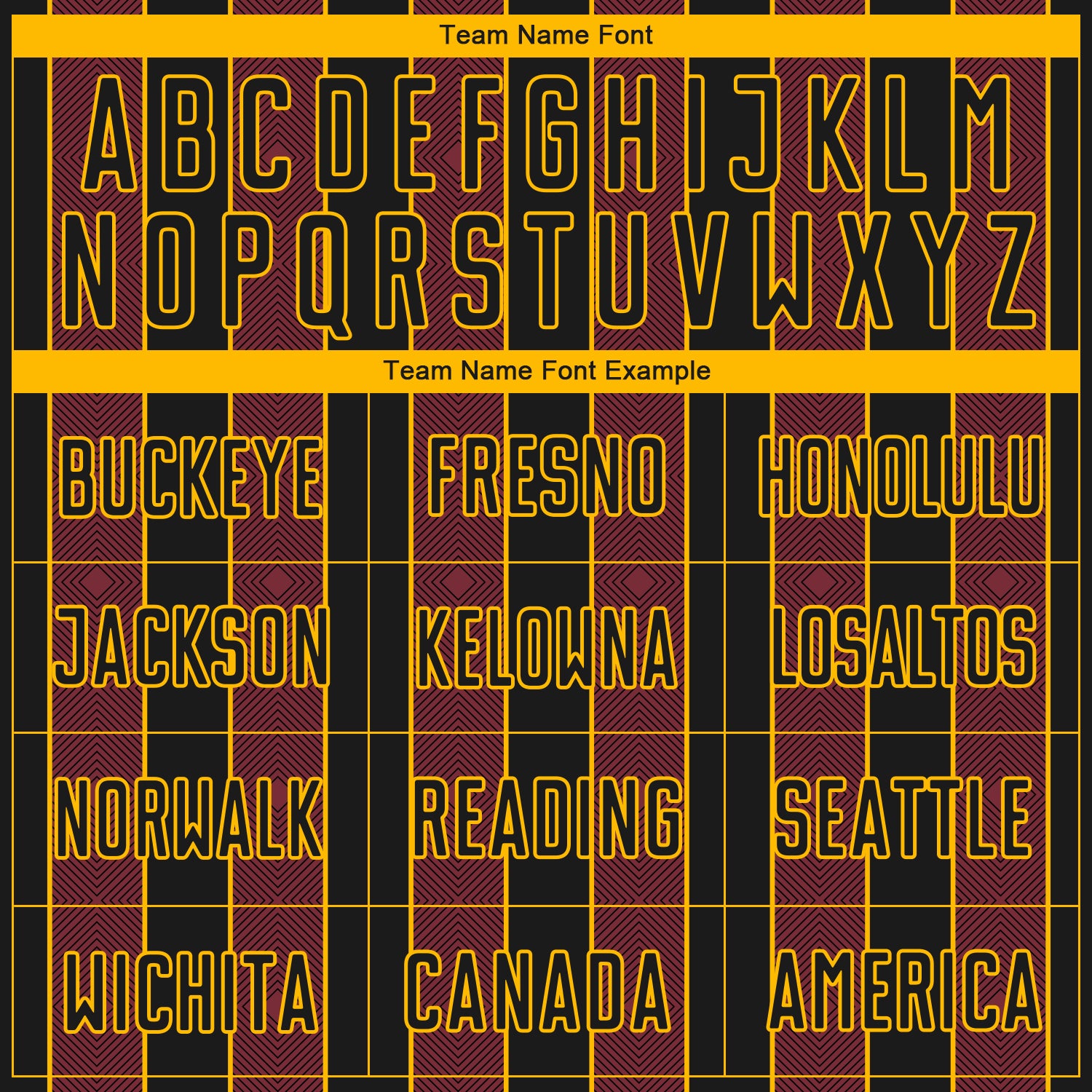 Custom Black Burgundy-Gold Pinstripe Line Sports Sublimation Soccer Uniform Jersey