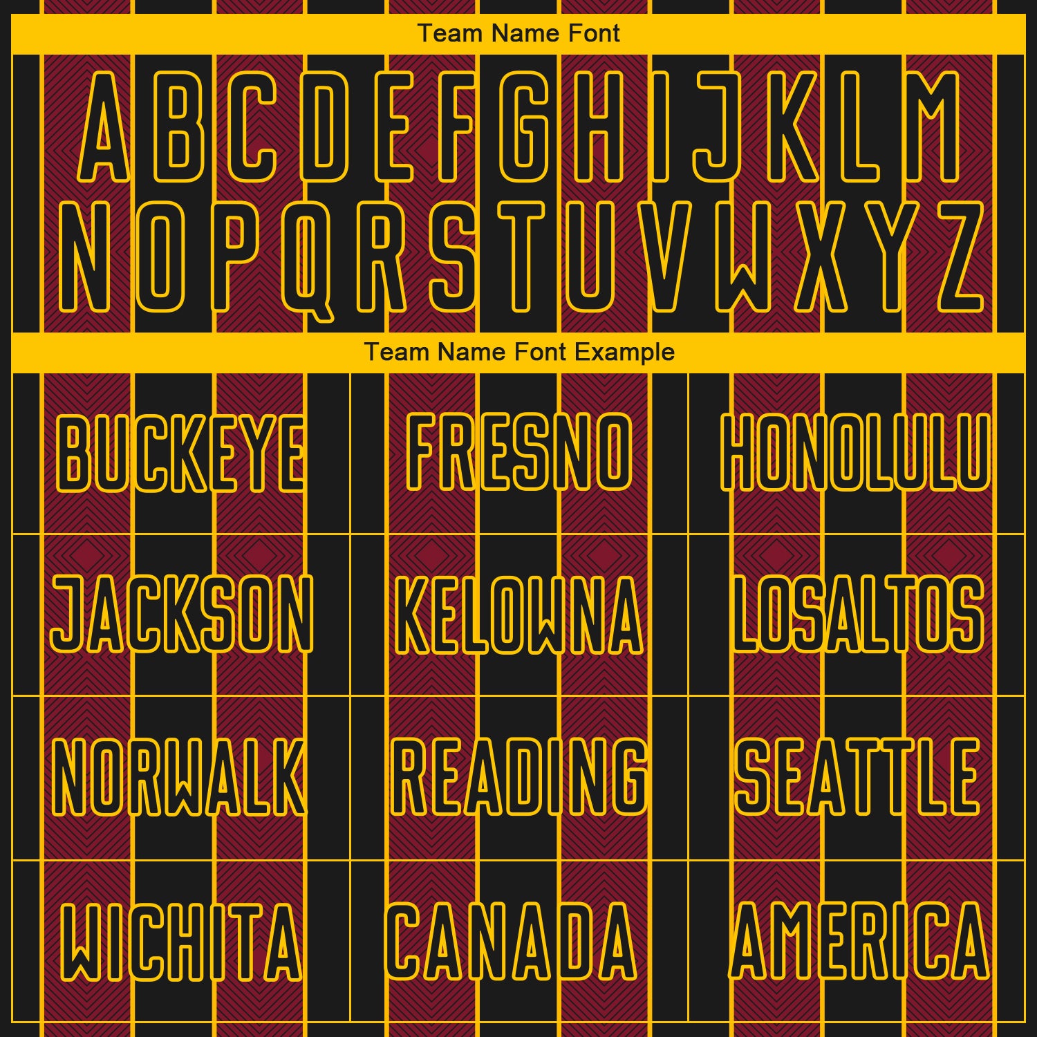 Custom Black Crimson-Gold Pinstripe Line Sports Sublimation Soccer Uniform Jersey