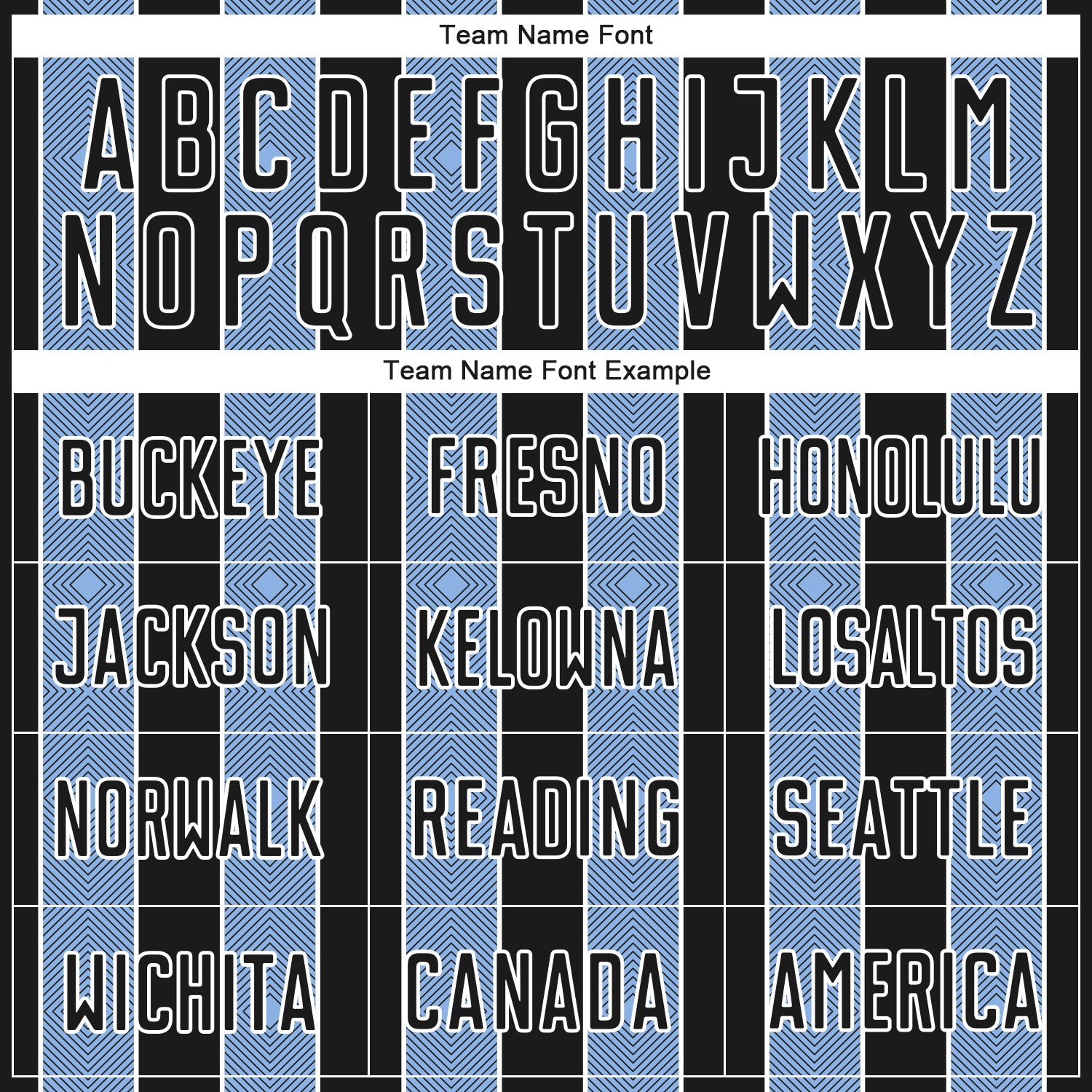 Custom Black Light Blue-White Pinstripe Line Sports Sublimation Soccer Uniform Jersey