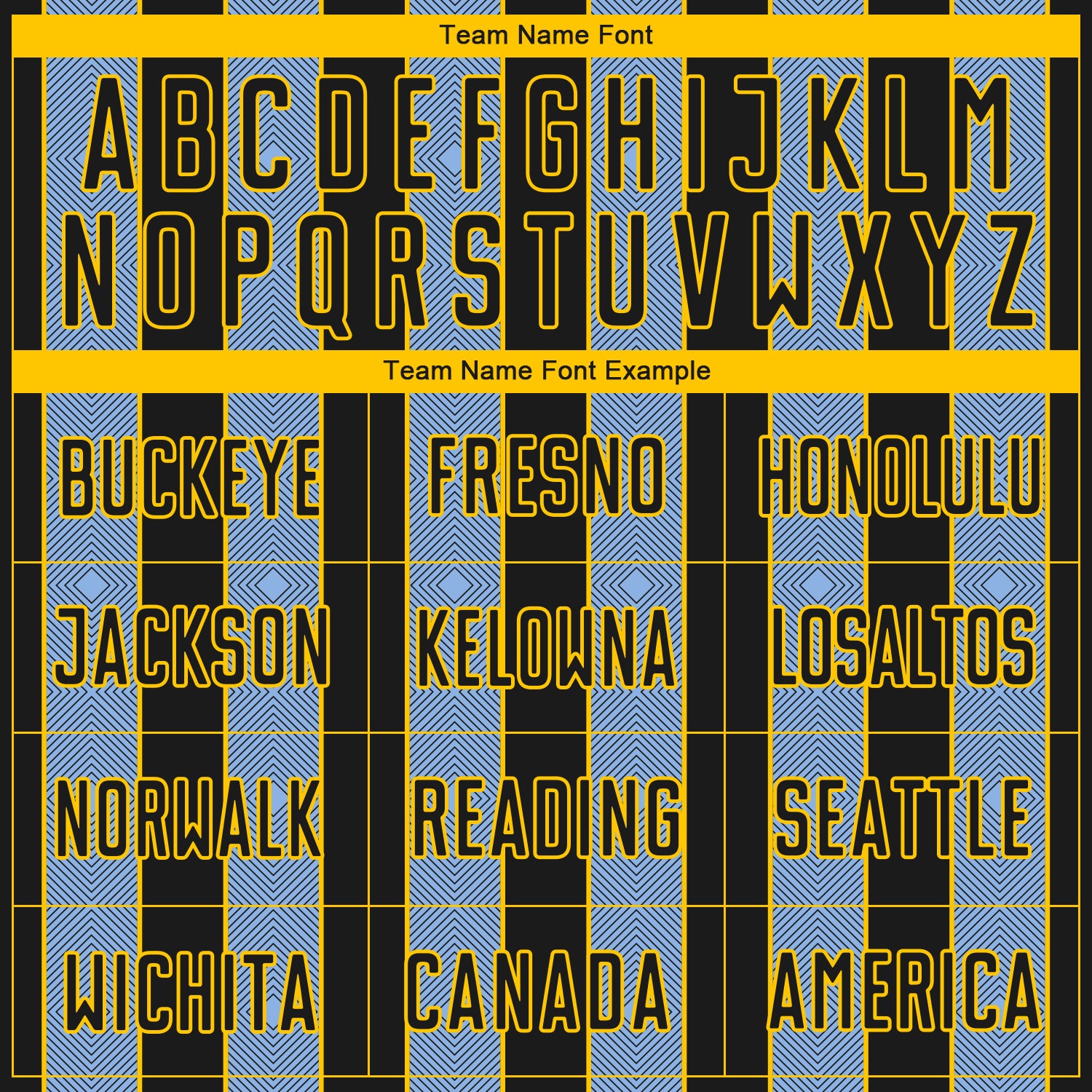 Custom Black Light Blue-Yellow Pinstripe Line Sports Sublimation Soccer Uniform Jersey
