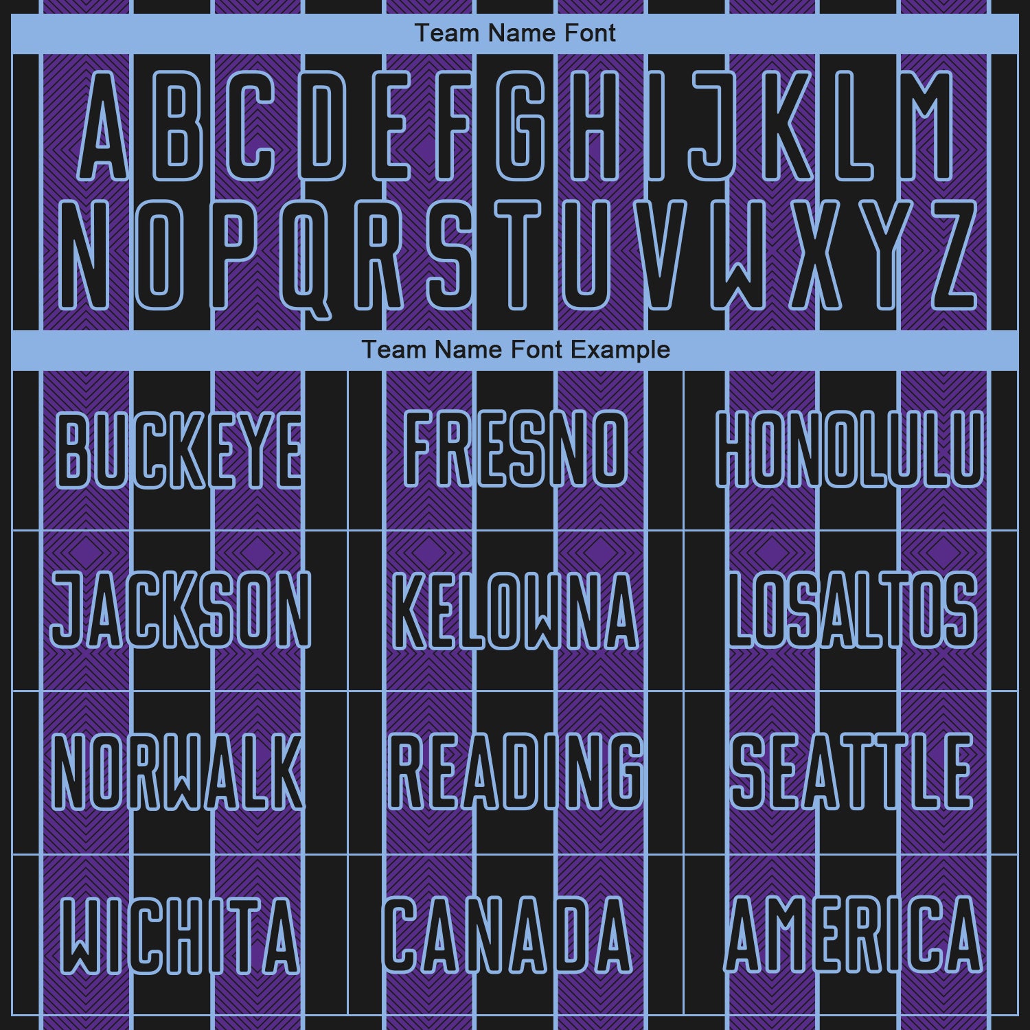 Custom Black Purple-Light Blue Pinstripe Line Sports Sublimation Soccer Uniform Jersey