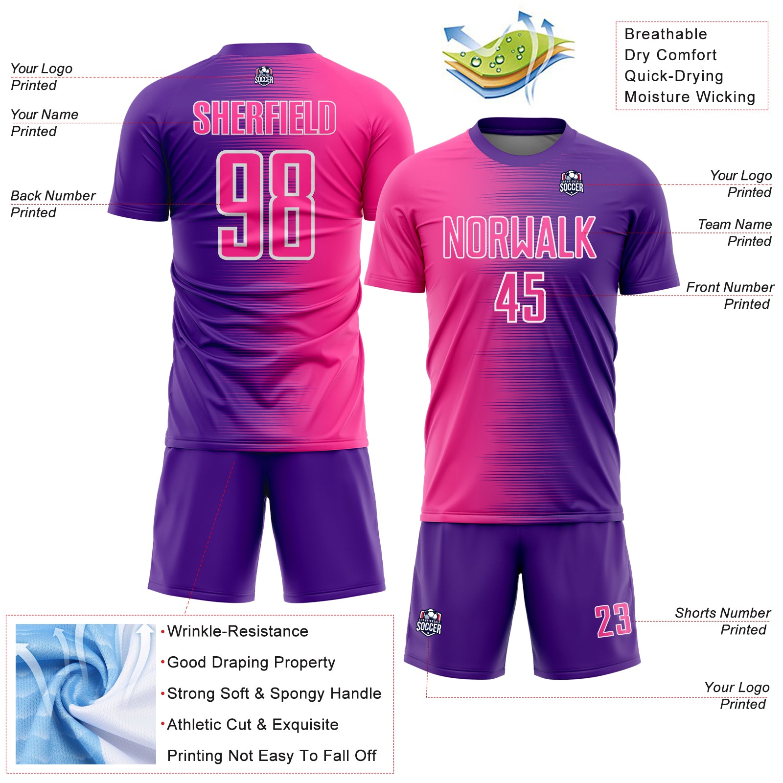 Custom Purple Pink-White Gradient Line Sublimation Soccer Uniform Jersey