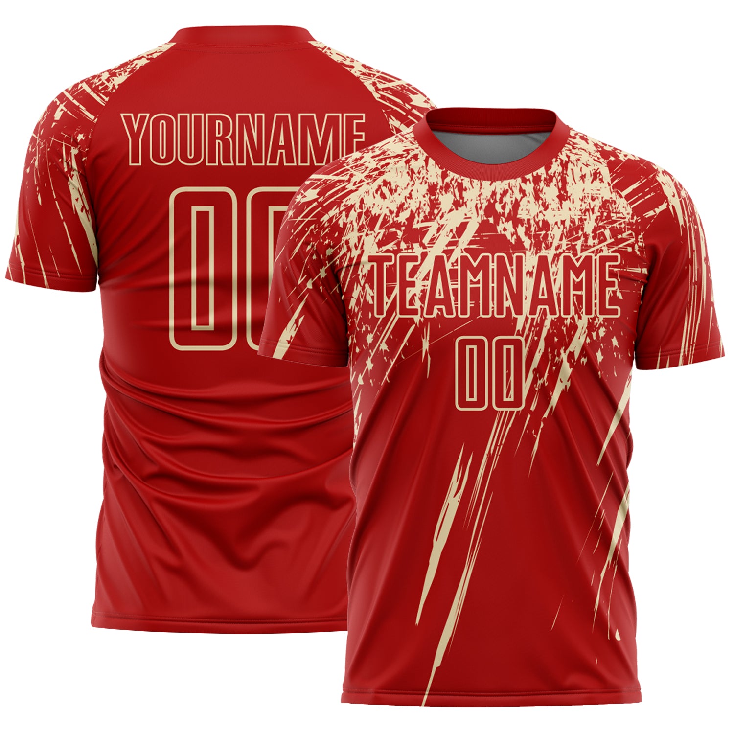 Custom Red Cream Splash Sports Sublimation Soccer Uniform Jersey