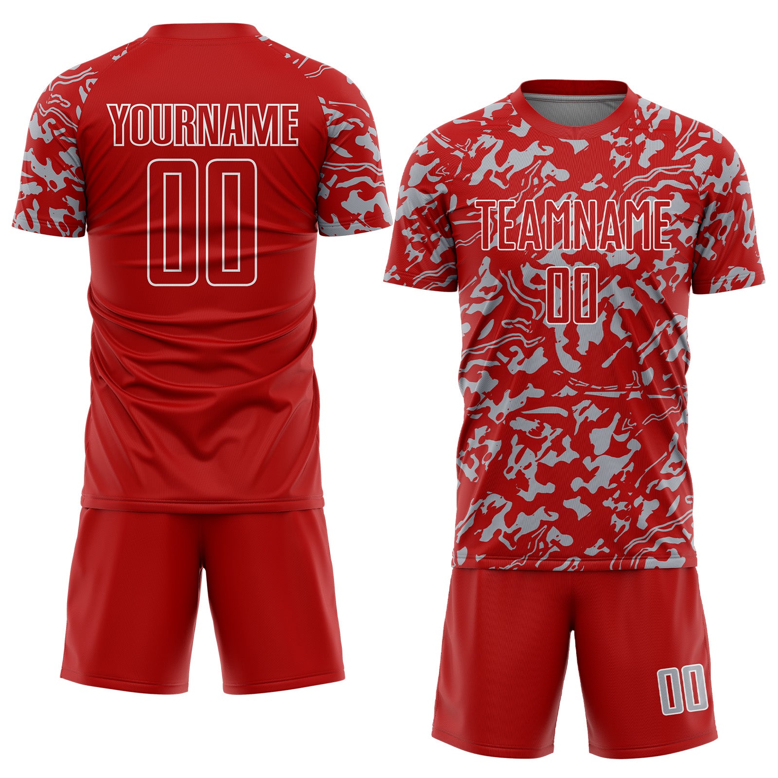 Custom Red Gray-White Liquid Fluid Pattern Sports Sublimation Soccer Uniform Jersey