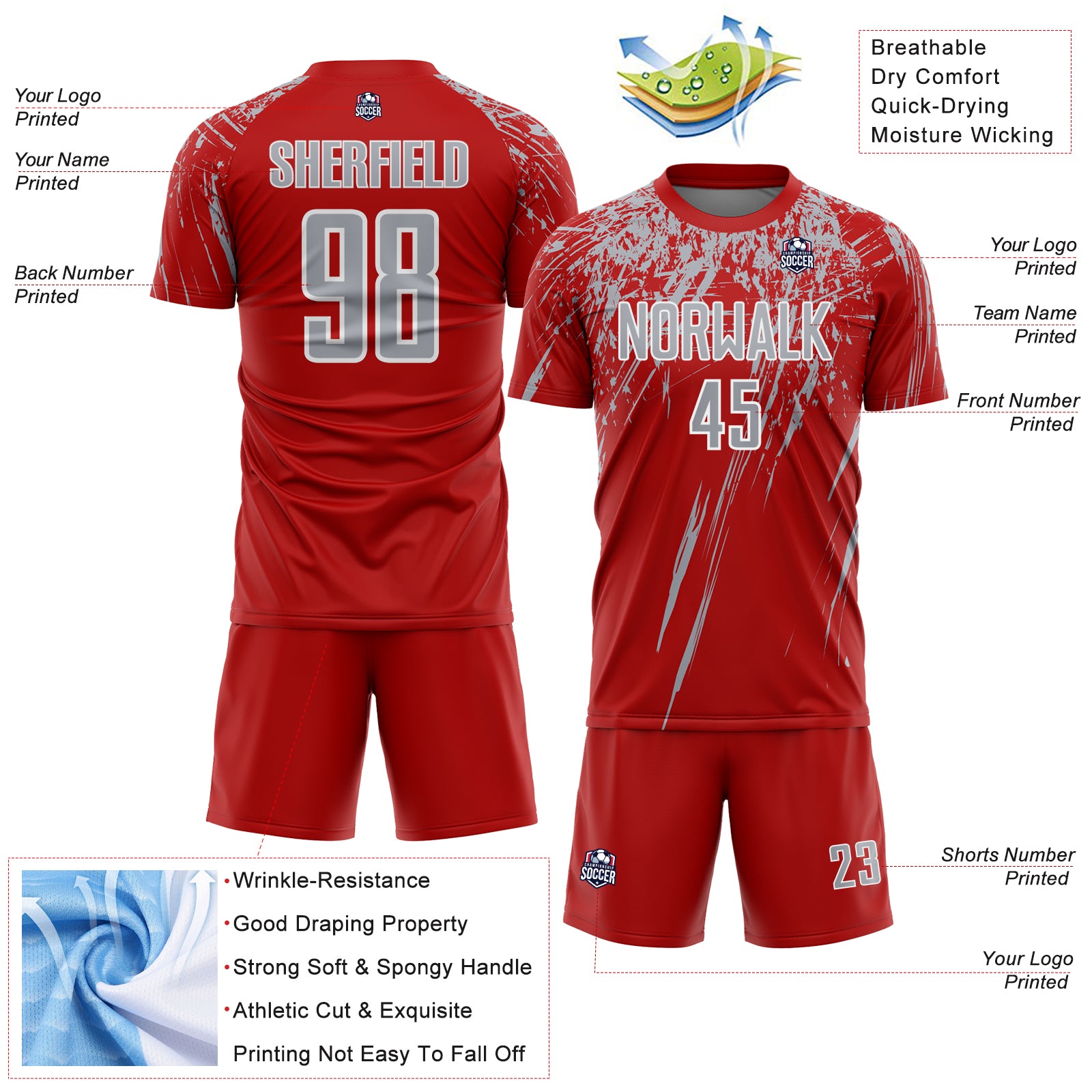 Custom Red Gray-White Splash Sports Sublimation Soccer Uniform Jersey