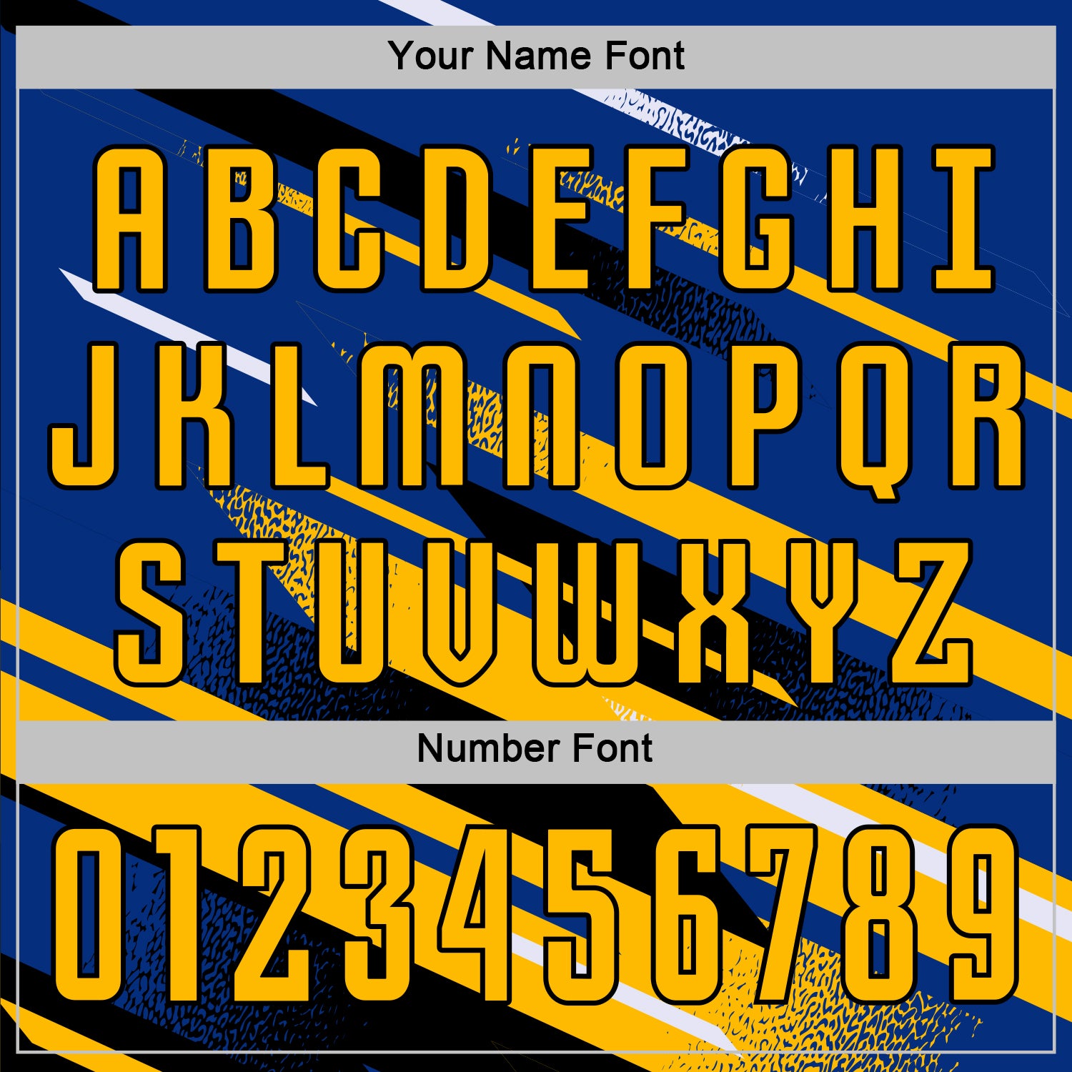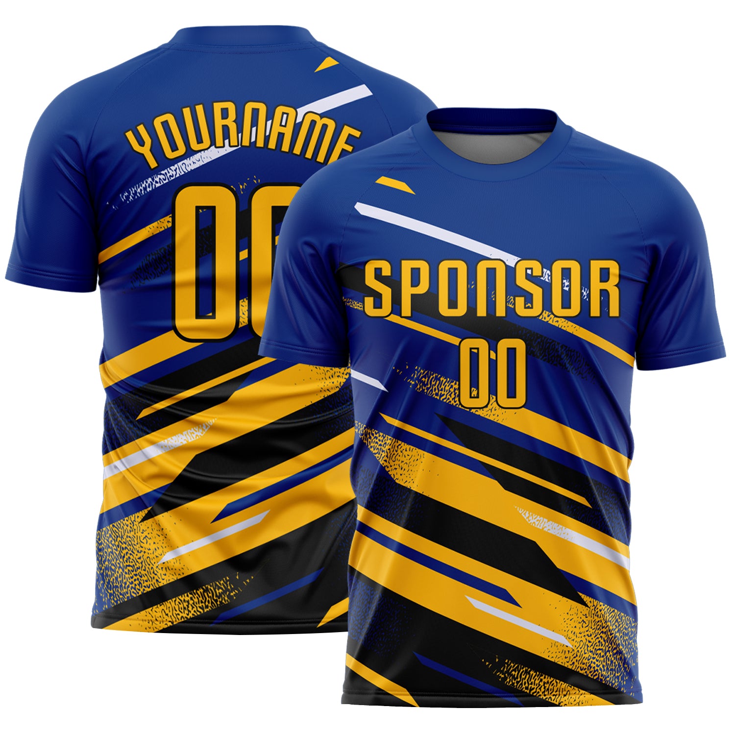 Custom Royal Gold Black-White Grunge Stripe And Grainy Sports Sublimation Soccer Uniform Jersey