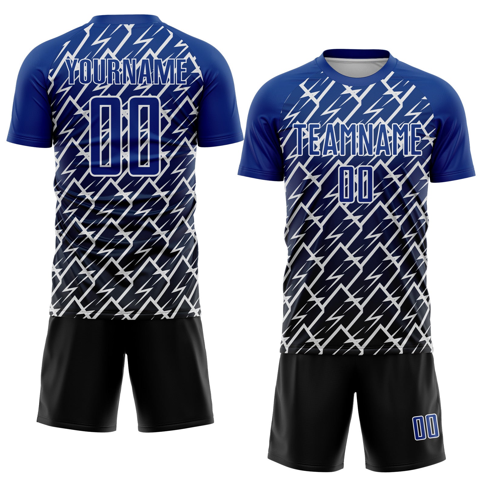 Custom Royal Black-White Lightning Sports Sublimation Soccer Uniform Jersey