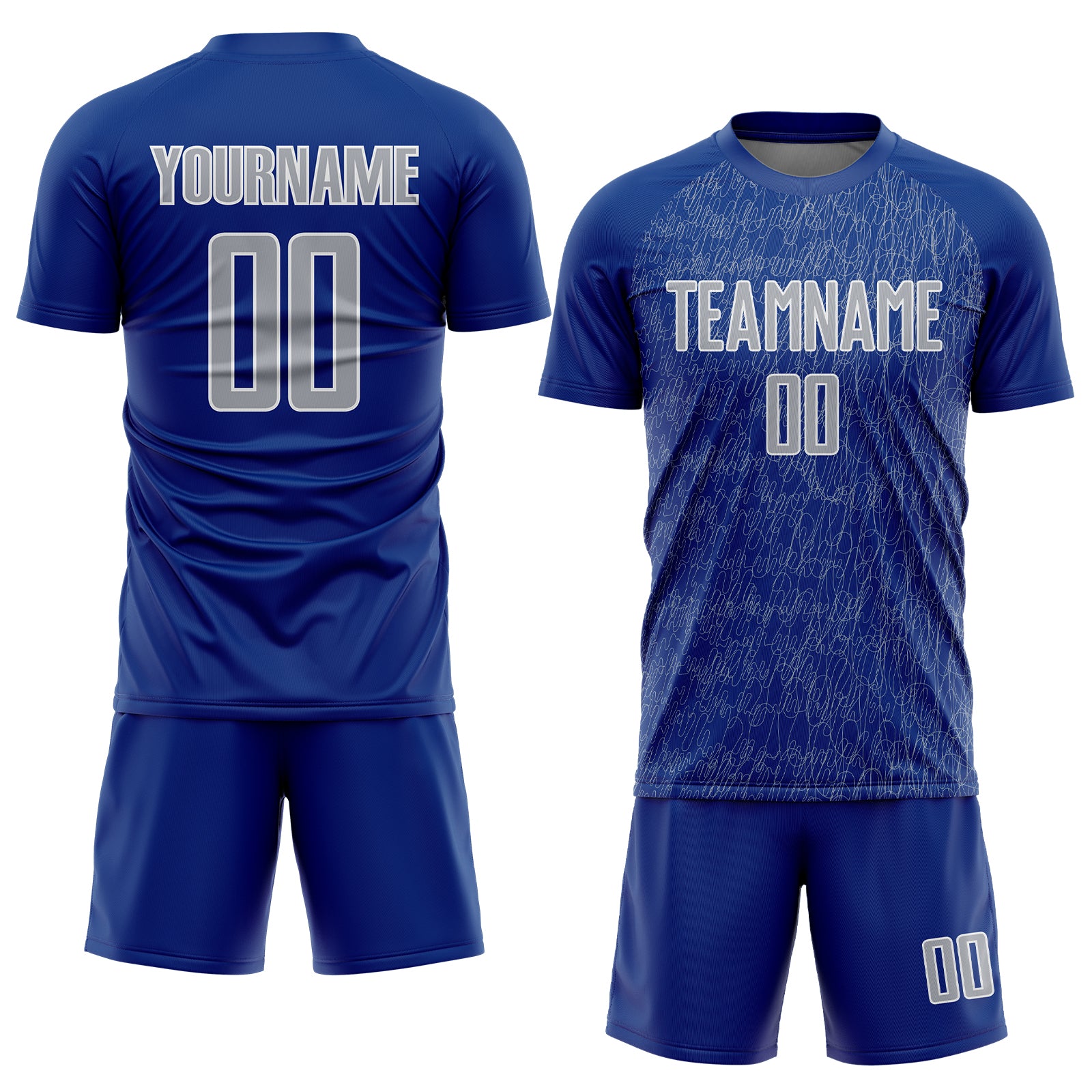 Custom Royal Gray-White Abstract Scribble Curve Line Pattern Sports Sublimation Soccer Uniform Jersey
