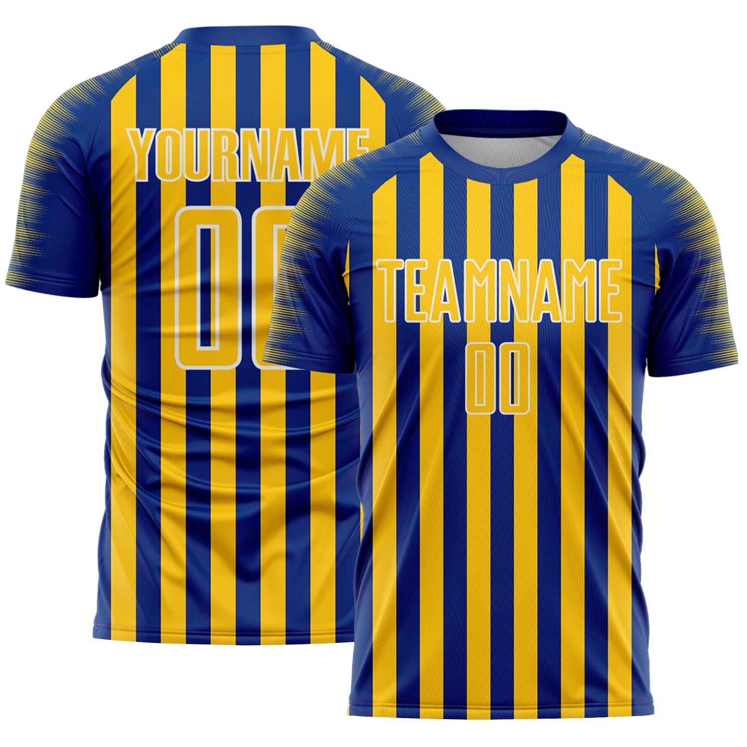 Custom Royal Yellow-White Stripe Sports Sublimation Soccer Uniform Jersey