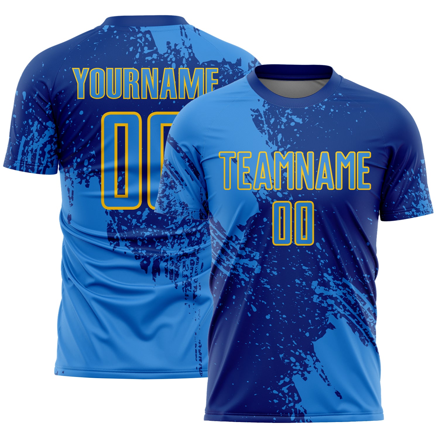Custom Royal Powder Blue-Yellow Abstract Brush Stroke Sports Sublimation Soccer Uniform Jersey