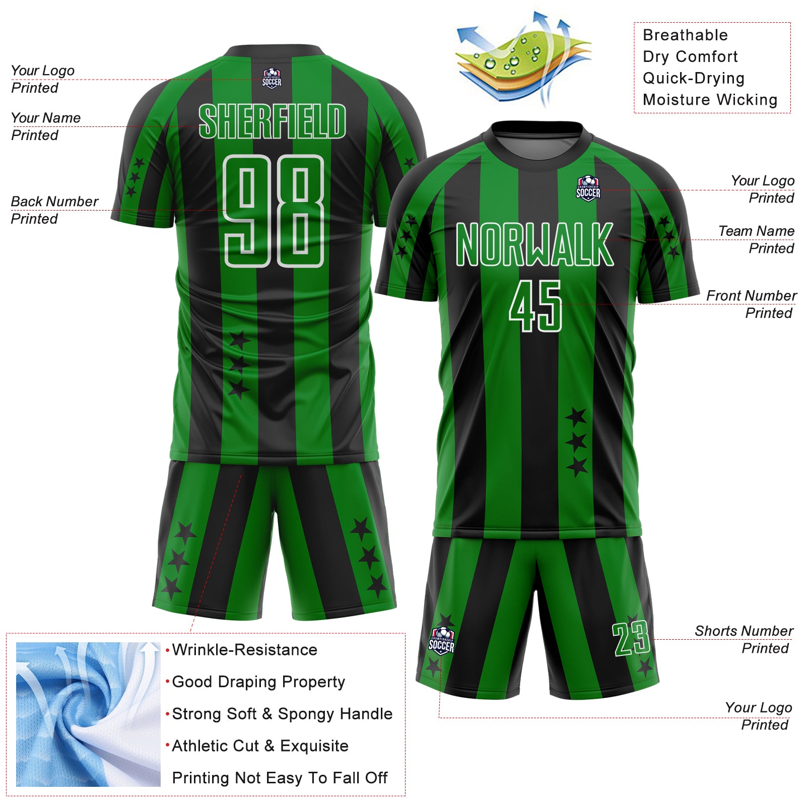 Custom Black Grass Green-White Stars And Stripes Sports Sublimation Soccer Uniform Jersey