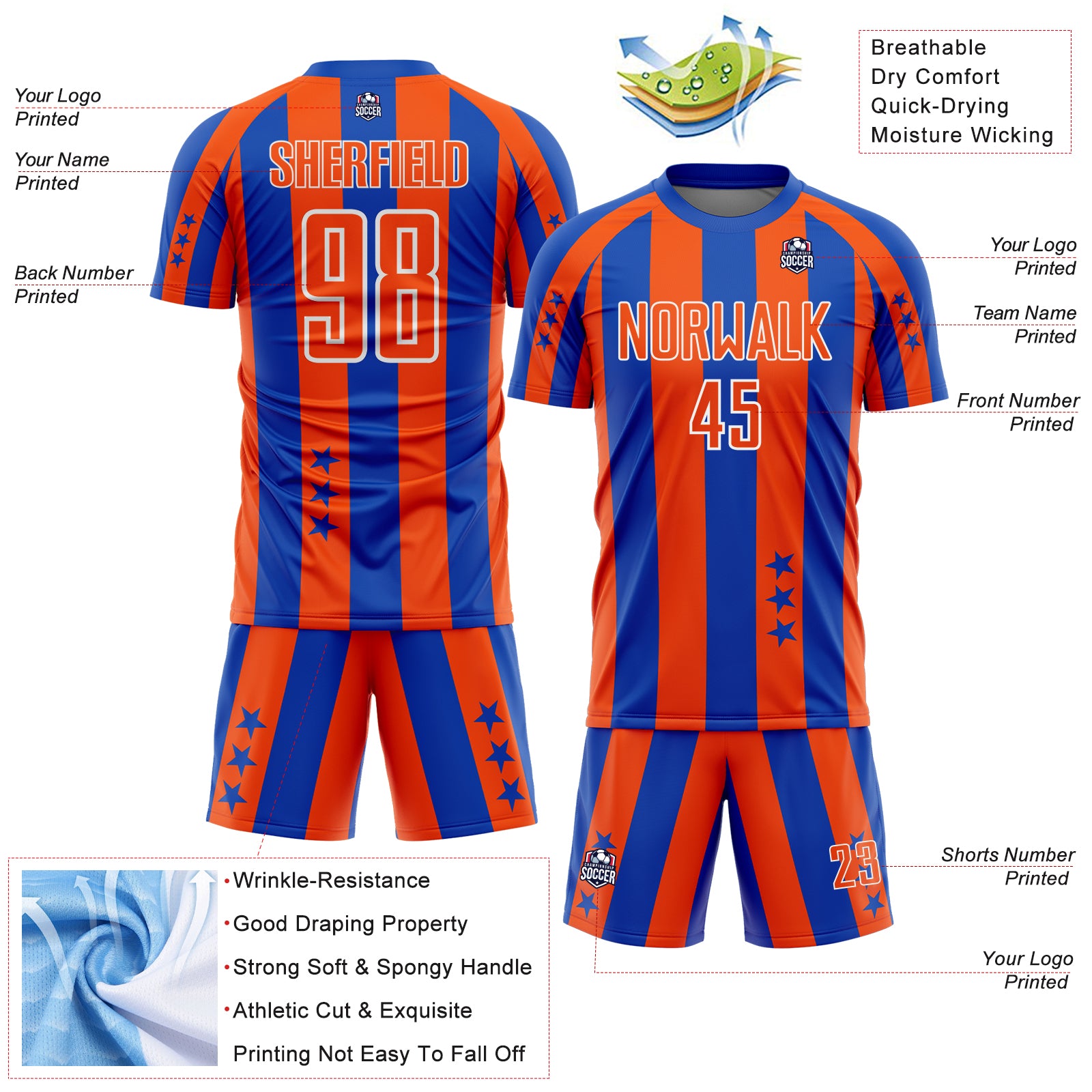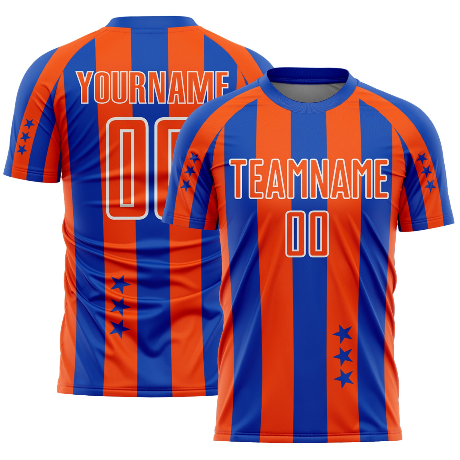 Custom Thunder Blue Orange-White Stars And Stripes Sports Sublimation Soccer Uniform Jersey