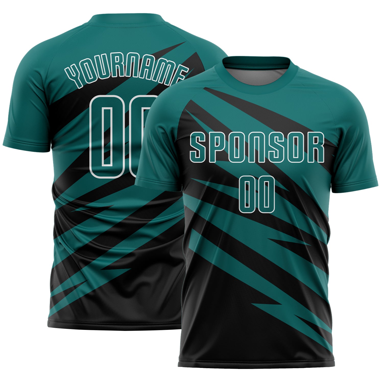 Custom Teal Black-White Abstract Line Sports Sublimation Soccer Uniform Jersey